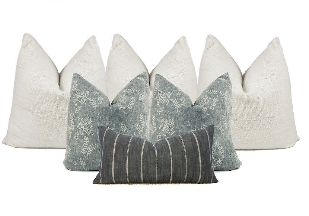 The number one question we get asked from our customers is for help with pillow combinations. It's tricky mixing colors, designs, and sizes together so we created a bunch of gorgeous combos to fit into any space. Available on our shop under Pillow Combos. Here are a few sets we put together using a combo of designer pillows and Mudcloth textiles, like the Cream Mudcloth Pillow Cover. Let us know what you think. Hope you love!Â