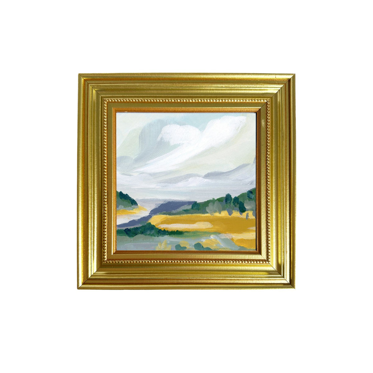 Autumn on the Beach is a fine art giclée print on canvas, framed to highlight its intimate scale and seasonal palette. The piece captures the soft transitions of light along the shoreline, evoking the warmth and calm of a fall day by the sea. Its square format and subtle detail make it an ideal accent for small spaces, shelves, or layered gallery walls.