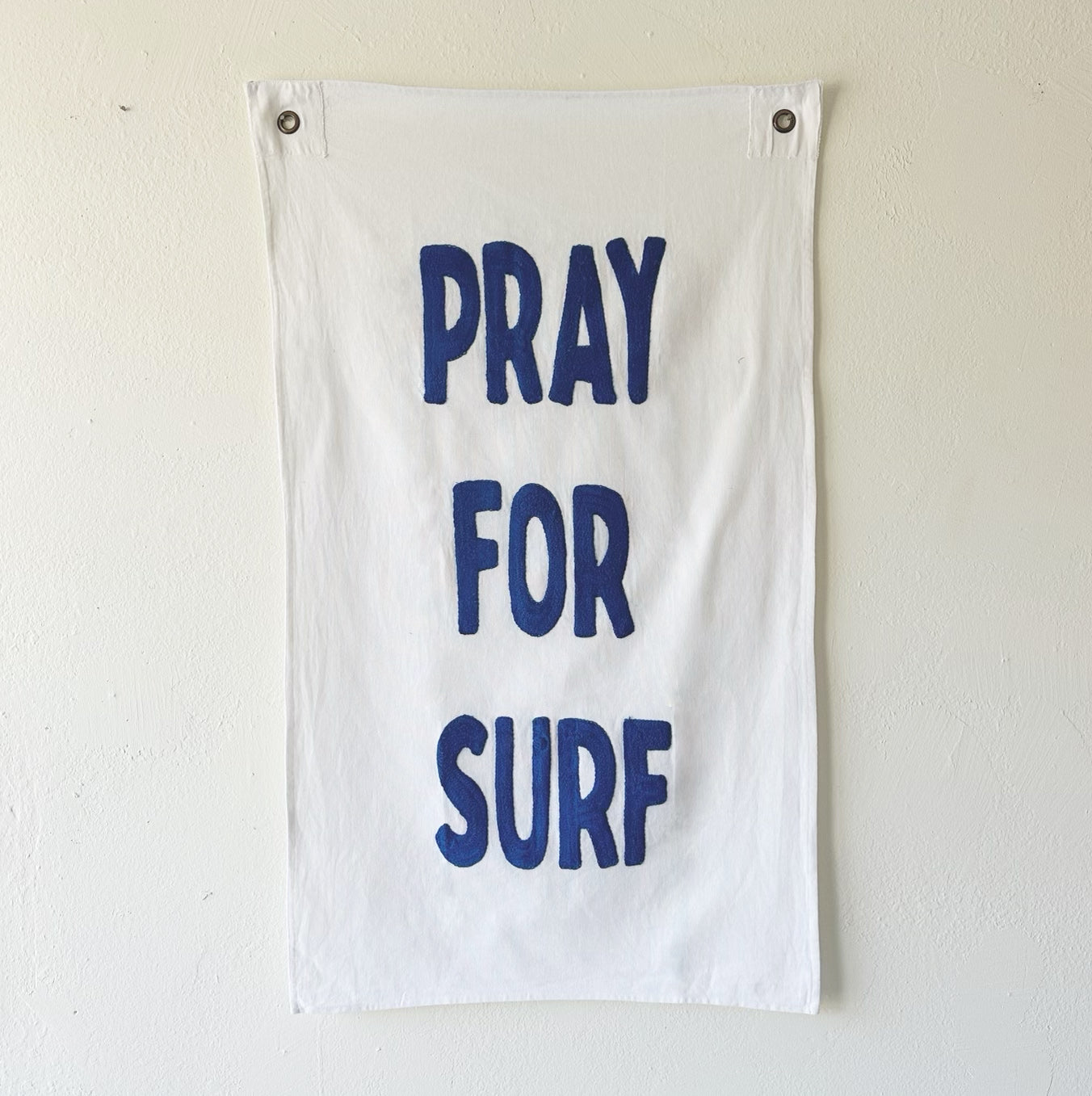 Breezy, soulful, and effortlessly coastal—the Pray For Surf Wall Tapestry brings a warm, beach-washed spirit into any room. Crafted from 100% cotton canvas, each piece embraces a beautifully imperfect, organic texture that feels both relaxed and refined. The hand-embroidered lettering adds a layer of artistry and intention, transforming a simple banner into a meaningful keepsake that feels personal, tactile, and truly one-of-a-kind.