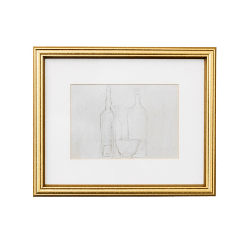 Featuring a minimalist line drawing of bottles, the Shay Wall Art offers a touch of vintage charm that feels especially at home in a kitchen, dining nook, or bar area. Finished with a subtle foil gold frame, it introduces warmth and sophistication while remaining versatile enough to complement a range of interior styles.