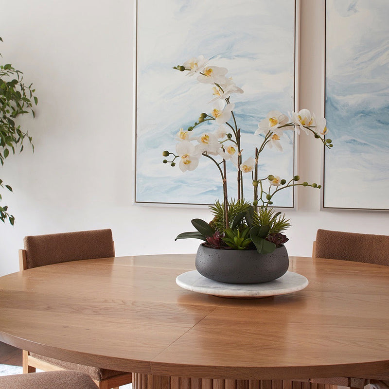 Set in a modern grey round pot, this lifelike arrangement complements both classic and contemporary interiors. Handcrafted with high-quality materials, it ensures lasting vibrancy and durability, making it a timeless piece for year-round styling indoors or in covered outdoor areas.