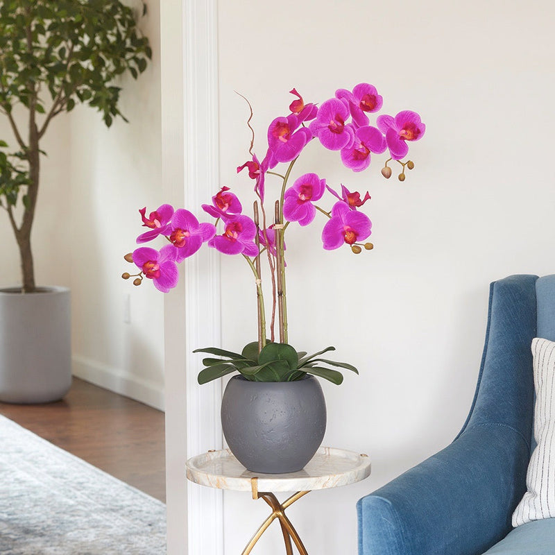 Set in a modern grey pot, the orchid’s delicate blooms and tall silhouette complement both contemporary and classic interiors. Handcrafted with high-quality materials for a natural look, this Artificial orchid plant ensures lasting beauty season after season, indoors or in covered outdoor spaces.