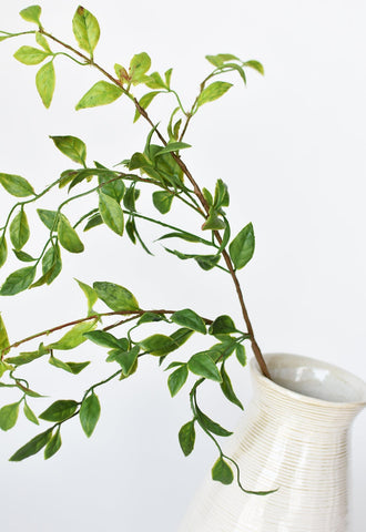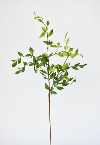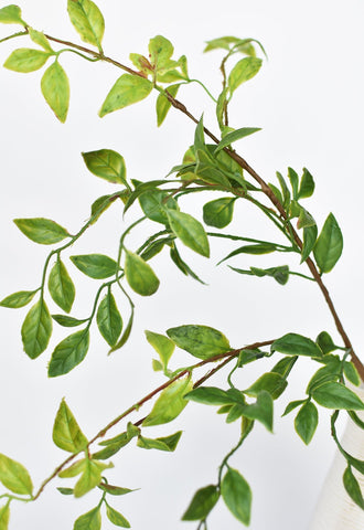 Bring lush greenery to your floral designs with the 32" Artificial Nandina Leaf Stem. Featuring over 70 lifelike leaves across seven branches, this piece offers a natural mix of green tones accented with subtle rust and brown detailing for a realistic finish.