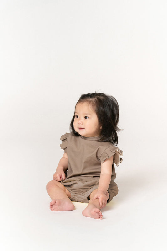 Baby Girl Jersey Top with Knife Pleated Sleeve Ruffle | Mocha - 0-3m