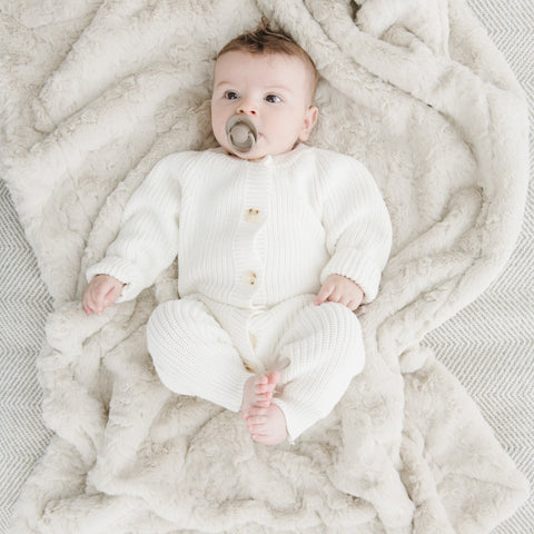 The Dream Receiving Blanket by Saranoni is truly what dreams are made of. Combining the beloved lush softness with a subtle textured finish, this blanket brings both comfort and timeless style to your nursery. With its elegant, traditional color palette, it blends seamlessly into any room while offering the perfect size to soothe and comfort little ones during naps, stroller rides, or bedtime.