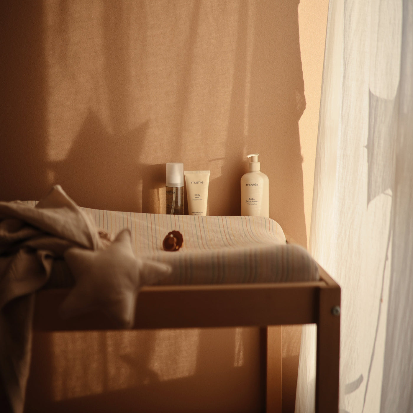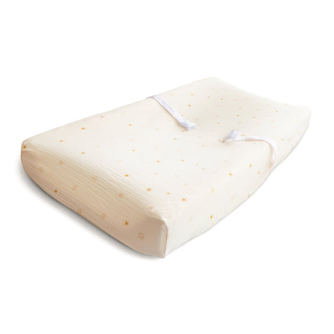 Made from 100% cotton, our cozy, extra-soft muslin changing pad cover is pre-washed for softness against baby's delicate skin. Muslin stays breathable while keeping your baby warm and cuddly.
