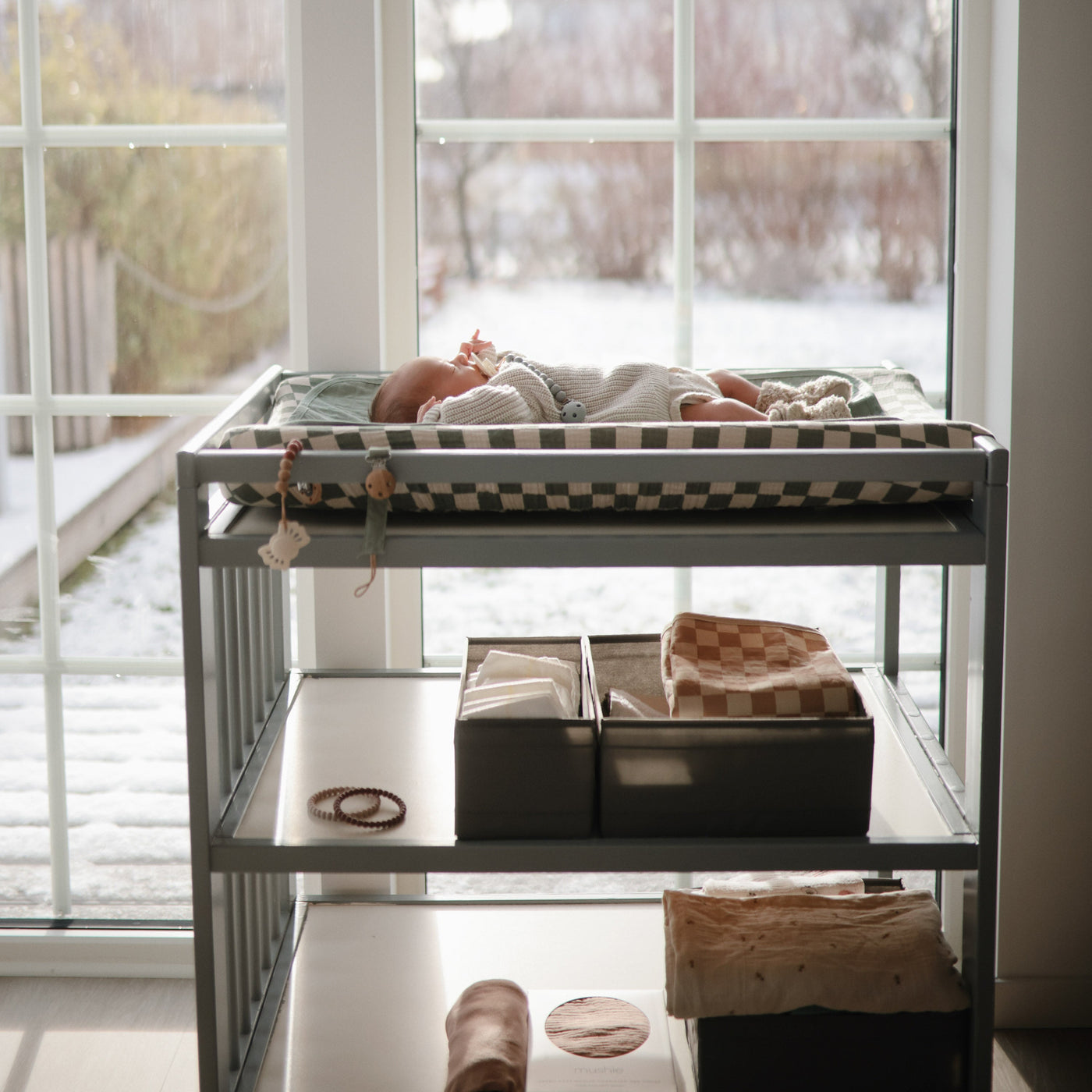 The changing pad cover comes with two holes to accommodate safety belts and is fully elastic to allow for easy removal, as well as a perfect fit wash after wash.