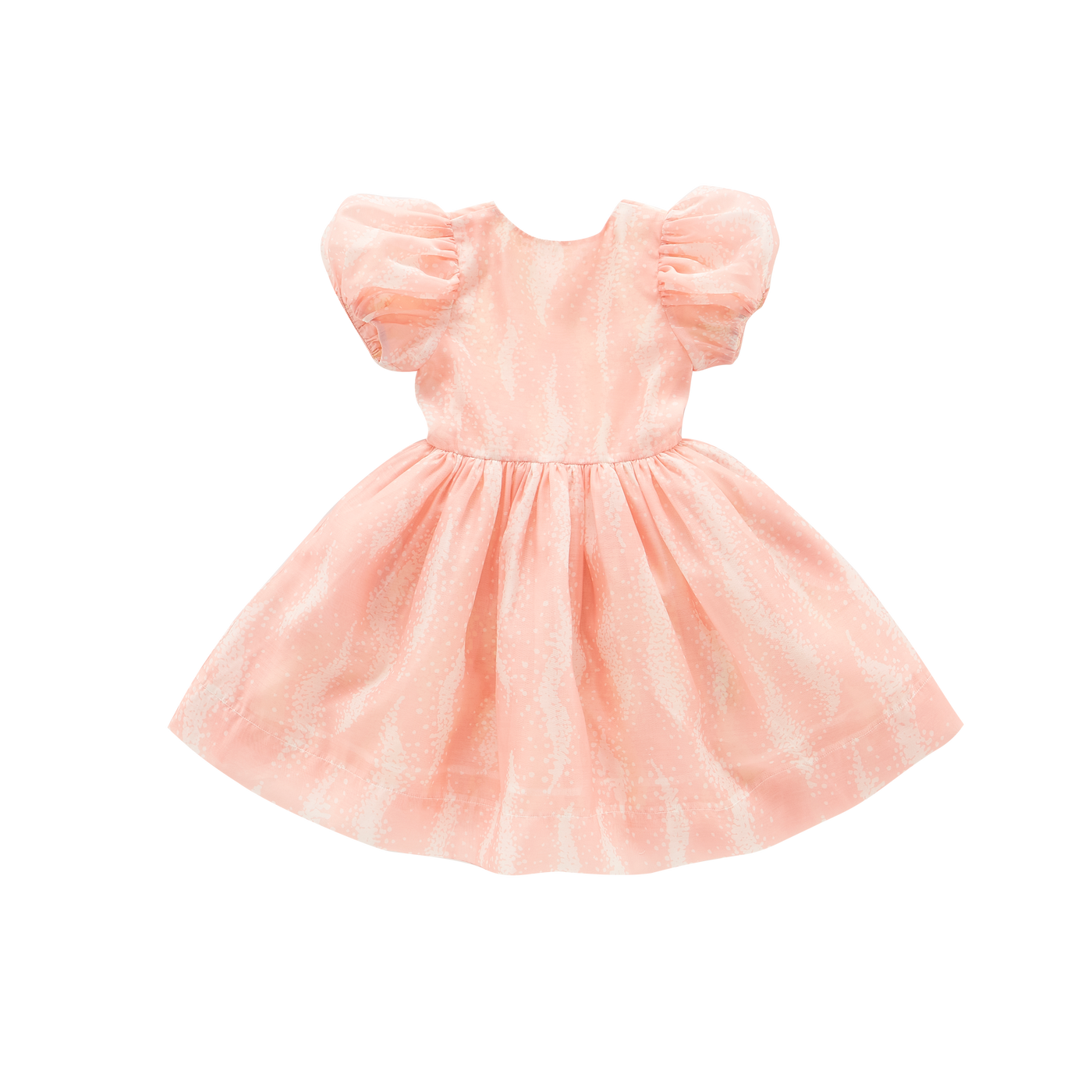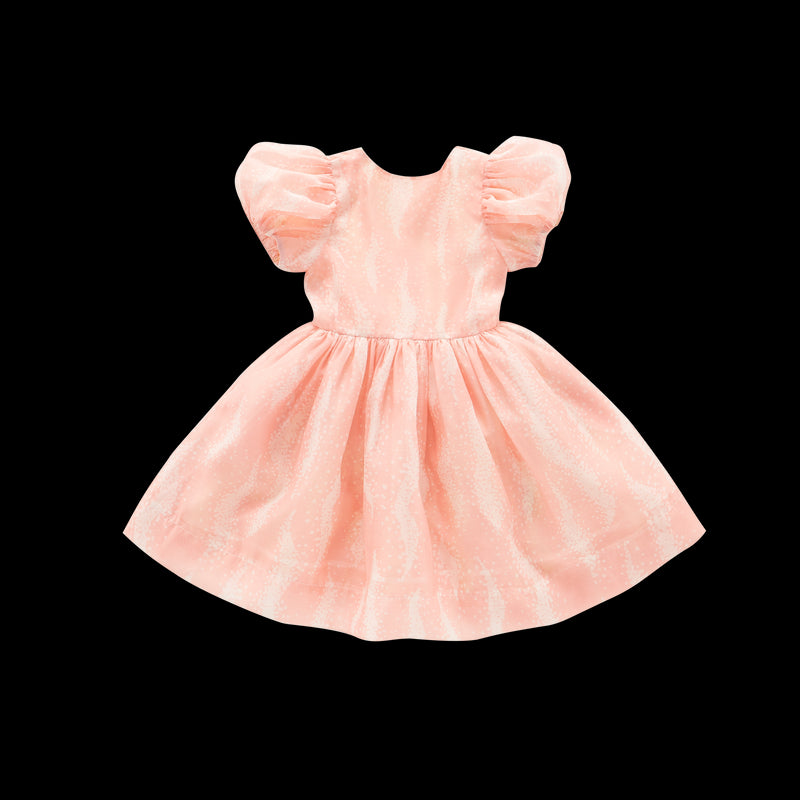 The ultimate special occasion dress for the Summer. Beautiful layers of printed organza fabric with just a hint of sheen and fancy details like fabric covered buttons make this dress stand out from the crowd. The bodice is perfectly fitted to contrast the full skirt and sleeves.