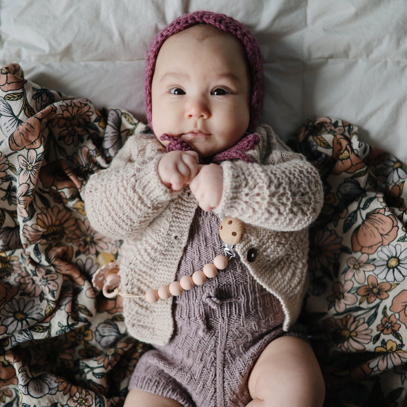 FRIGG silicone pacifiers are thoughtfully designed and made in Denmark for your baby's comfort and safety with an improved SilkySoft™ medical grade silicone nipple and patented Click-Lock® system. The outward curve keeps the pacifier off baby's delicate skin, while air holes and a security handle give parents extra peace of mind. The set includes a variety of four pacifiers in a curated palette—perfect for rotating through the week or gifting to a new parent.