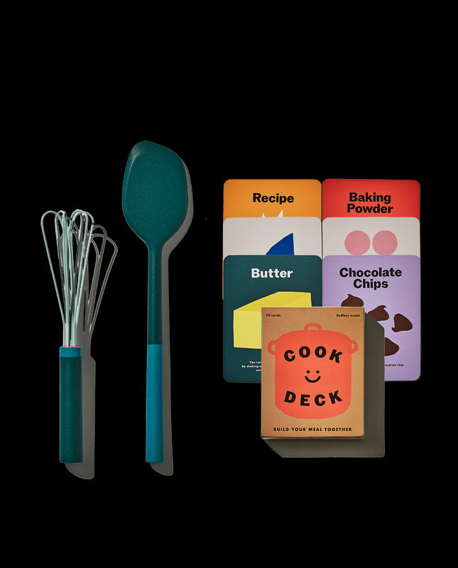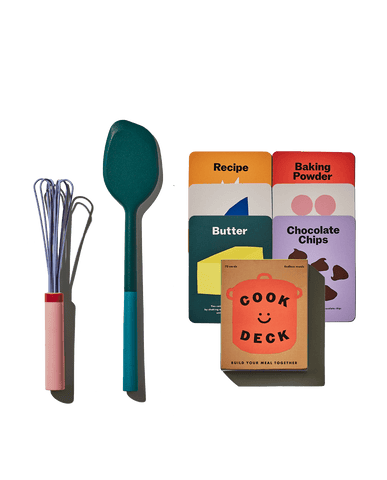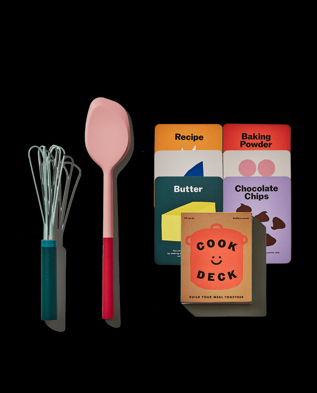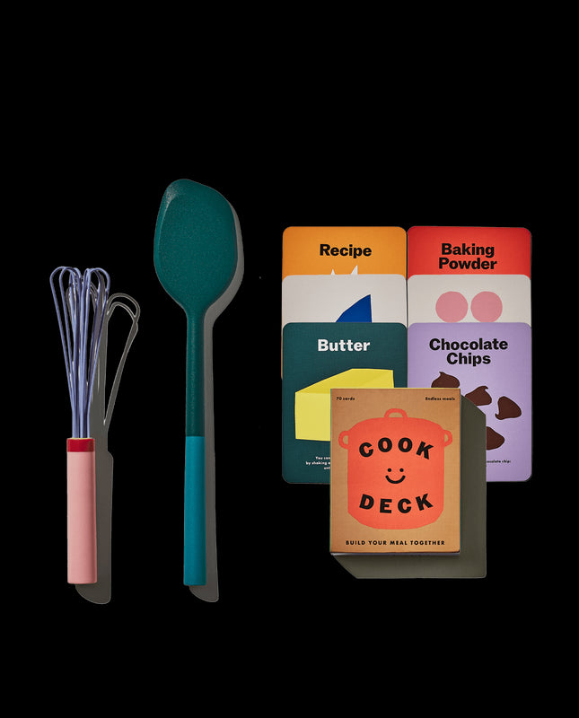 Introduce your little one to the joy of cooking with The Kids Set, a playful yet practical starter kit designed to make the kitchen fun, safe, and inspiring. With tools sized just right for small hands, kids can whisk, stir, and scrape while learning their way around food prep. The Cook Deck—a card game filled with simple, engaging prompts—helps them build confidence and creativity while making memories with you.