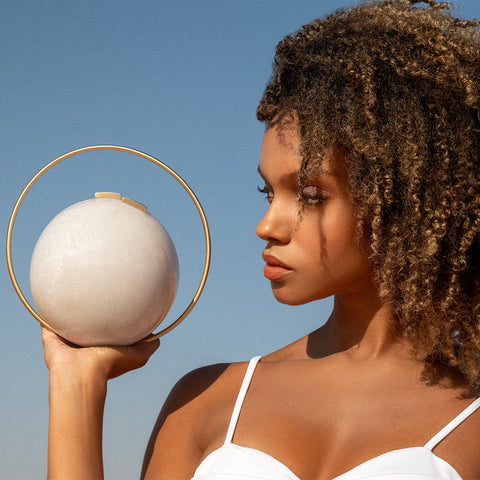 Radiate sophistication with the Daylight Orb Evening Clutch — a luminous, handcrafted statement piece designed to elevate any occasion. Made from pearl-toned resin and acrylic, this sculptural clutch captures and reflects light with subtle brilliance, creating a look that’s both modern and timeless. Its orb-like silhouette and refined brass detailing make it an instant conversation piece for evenings that call for elegance.