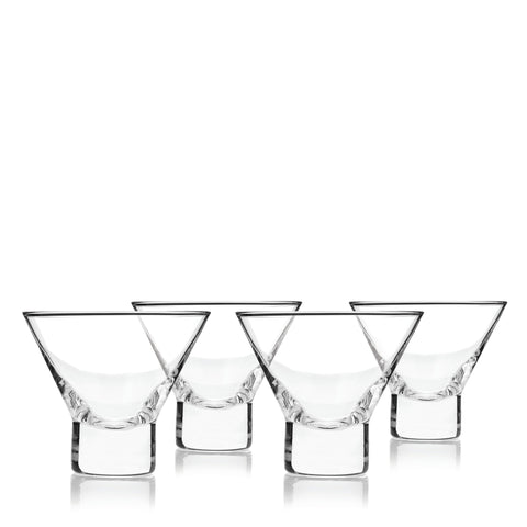 Celebrate the art of the martini with the Raye Heavy Base Stemless Martini Glasses. Sleek and modern, these lead-free crystal glasses reimagine a timeless classic with a contemporary silhouette that’s as comfortable to hold as it is striking to display. Their substantial base adds balance and durability, while the clean lines highlight the beauty of every pour.