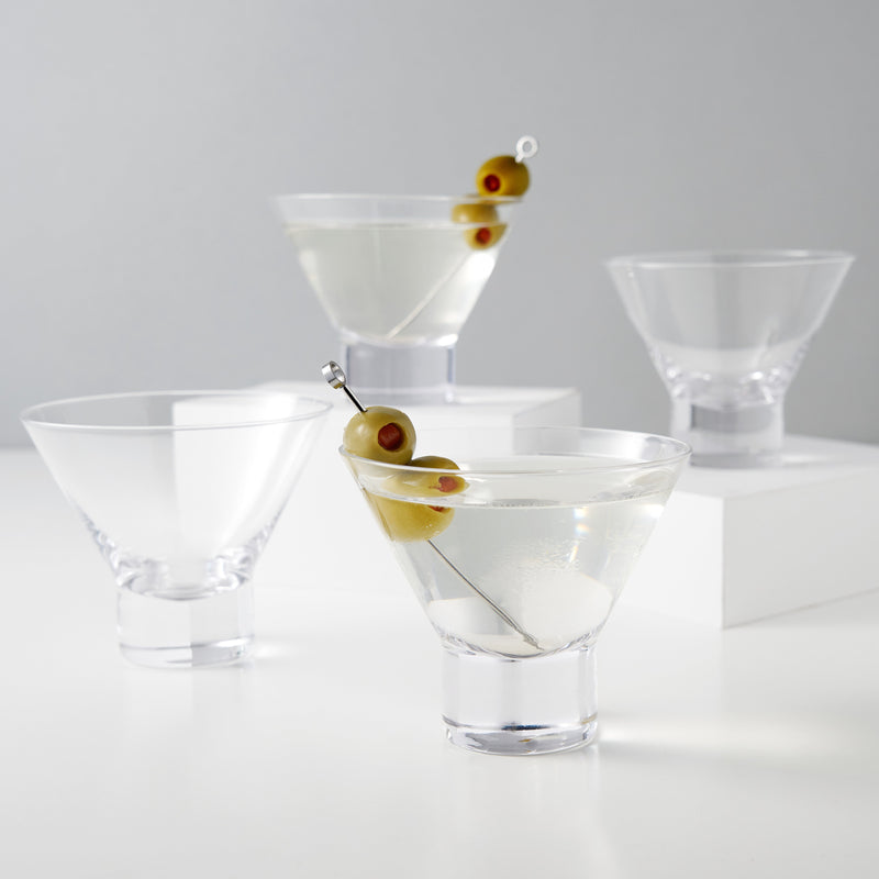 Perfect for martinis, cosmopolitans, or any cocktail that deserves to be showcased, this set of four makes entertaining elegant and effortless. Whether serving guests or savoring a quiet evening ritual, the Raye Stemless Martini Glasses turn each sip into a refined experience.