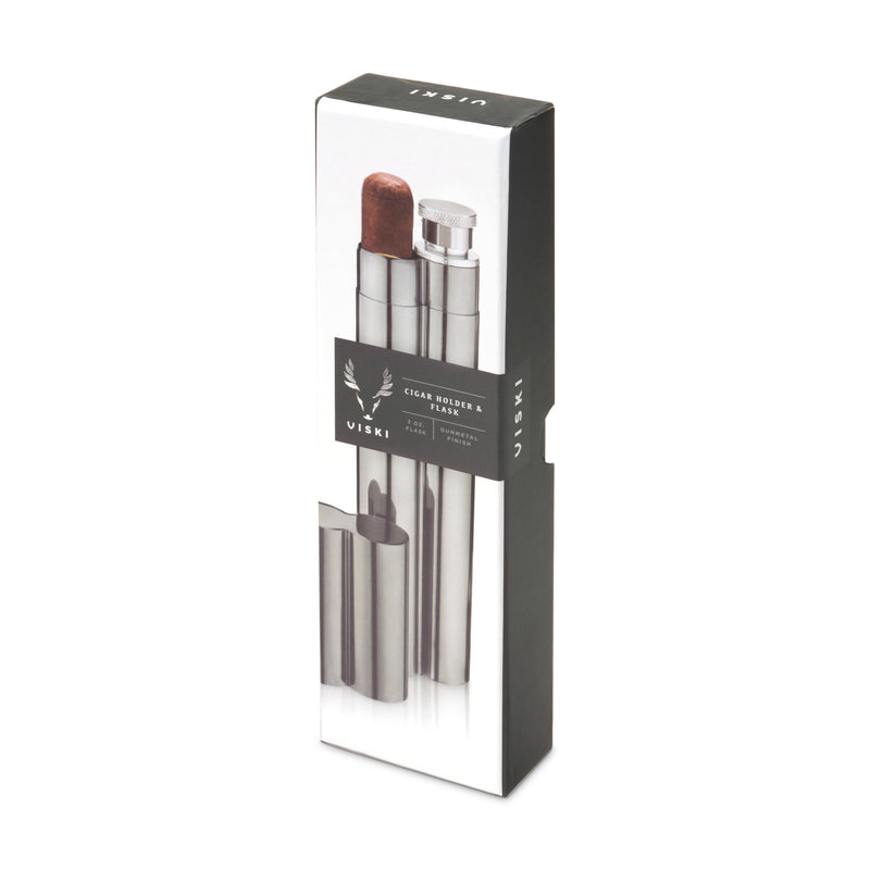 Ideal for travel, after-dinner gatherings, or celebratory occasions, this dual-purpose accessory holds a 52-gauge cigar alongside a 2 oz. flask of your preferred spirit. Slim enough for a pocket yet stylish enough to stand out, it’s a sophisticated gift for cigar lovers and spirit enthusiasts alike.