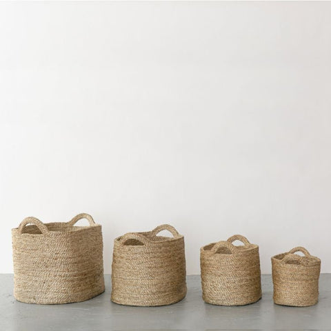 Handwoven by Fair Trade artisans in Bangladesh, each basket is a testament to traditional skill and modern design. Crafted from durable, eco-friendly jute, they offer a timeless solution for organization and decor. Available in four sizes—or as a complete set—these baskets adapt effortlessly to your needs while supporting artisan communities.