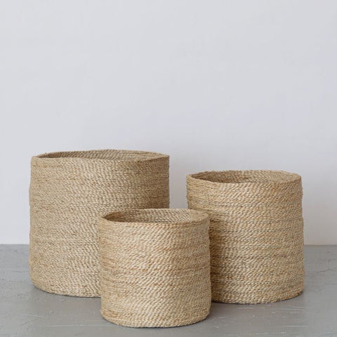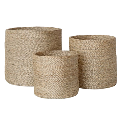 This trio of Tall Round Jute Storage Baskets is a versatile way to bring both organization and warmth into your home. Use them to gather supplies in a craft room, as decorative vessels for indoor plants, or as stylish storage in any living space.