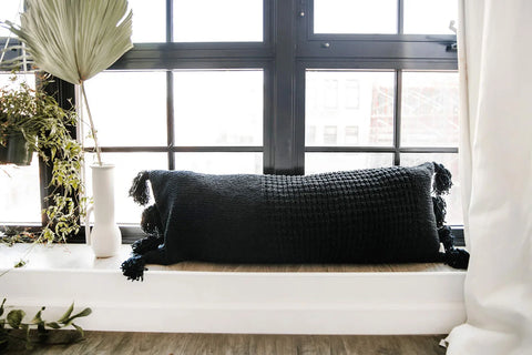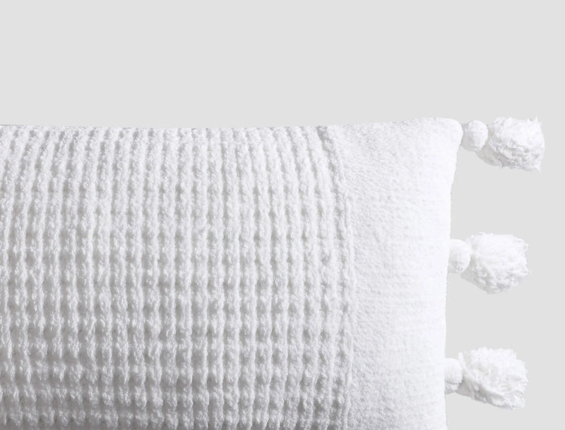 Add a touch of playful texture to your bed or sofa with the Braided Pom Pom Lumbar Pillow. This elongated memory foam pillow is covered in a removable Snug cover, braided for extra coziness and finished with whimsical pom poms. Designed for style and comfort, it makes the perfect accent piece while giving your back or lower body the support it needs.
