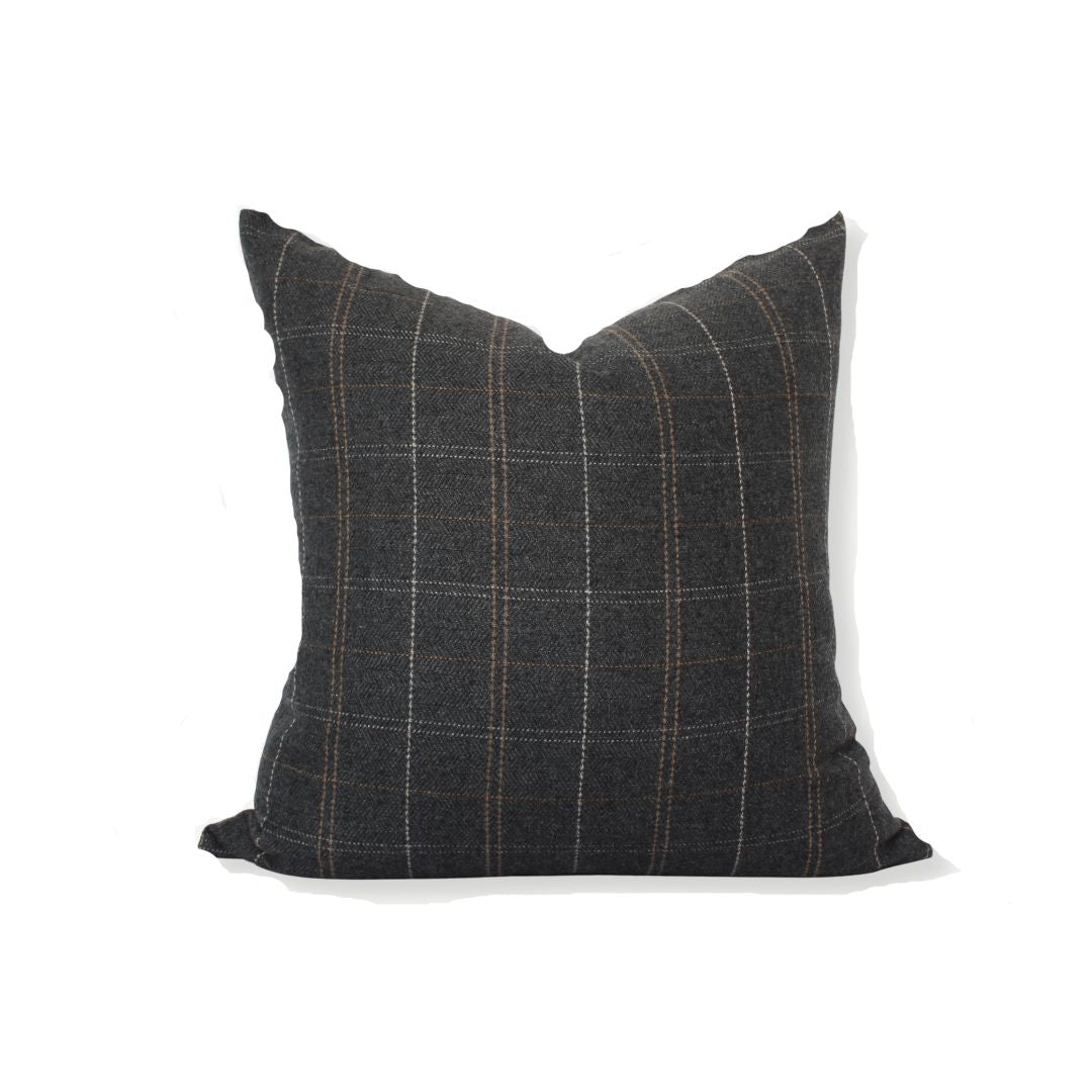 Add a dark and moody touch to your space with the Glenton Pillow Cover. Featuring a unique plaid design, this pillow brings a stylish edge to any room. The wool blend fabric offers both warmth and softness, making it the perfect accent piece for cozy spaces. The neutral tones allow it to pair effortlessly with a variety of other pillows and décor, making it a versatile addition to your home.
