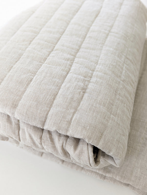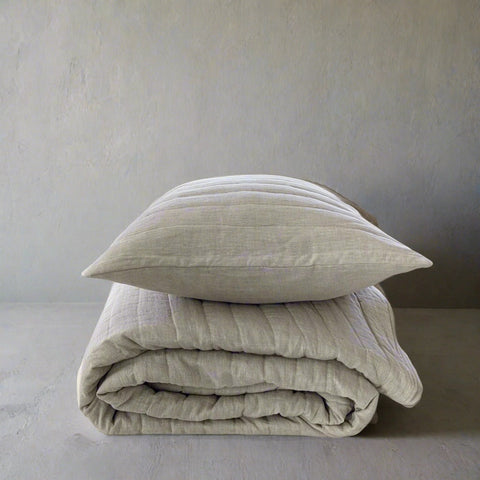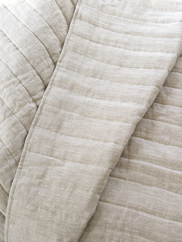 Crafted from 100% European Linen, our Channel Quilt & Shams are made from Stonewashed Linen for the ultimate comfort with luxury. Designed for year-round use, this cozy, breathable set offers the softest touch of linen. Renowned for its eco-friendly properties, European linen is gentle on sensitive skin, hypoallergenic, antimicrobial, and provides excellent thermoregulation and breathability.
