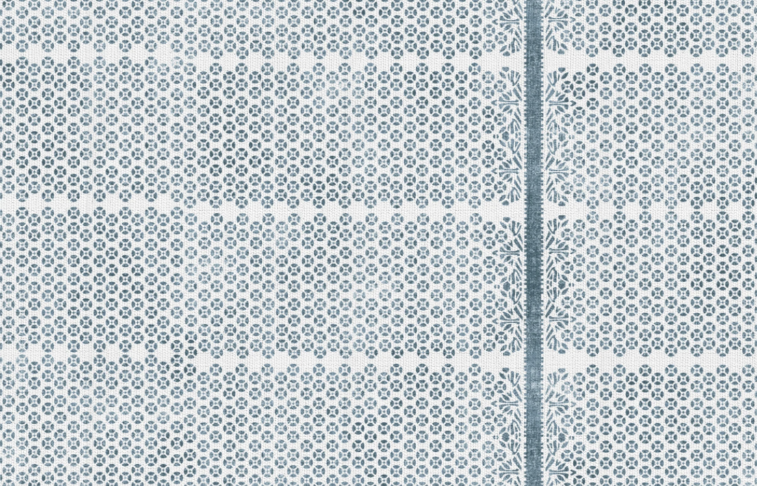 Front: Madu printed fabric in Blue on White (Susan Connor Textiles)