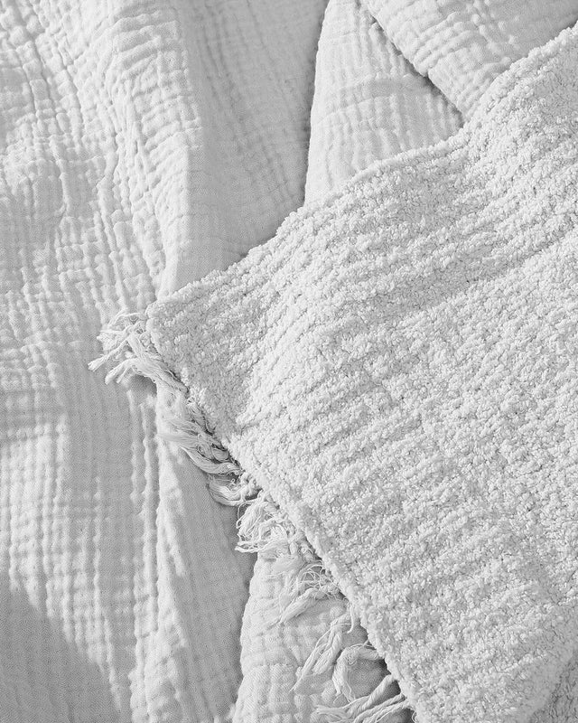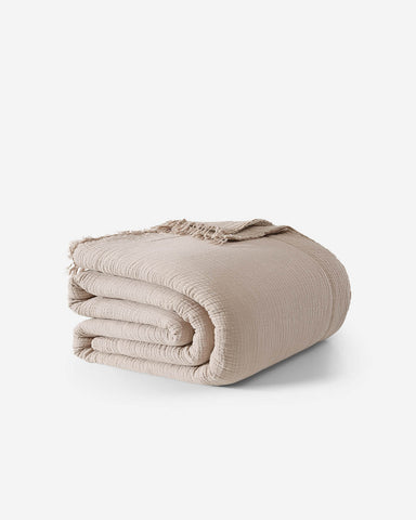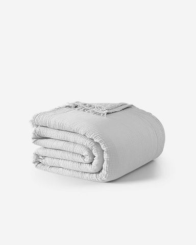 Elevate your sleep with the Snug Muslin Bed Blanket, a deliciously soft layer that blends breathable Muslin cotton with our signature cloudlike Snug fabric. Designed with Muslin’s naturally wrinkled look and stylish fringed edge, this blanket is as chic as it is cozy.