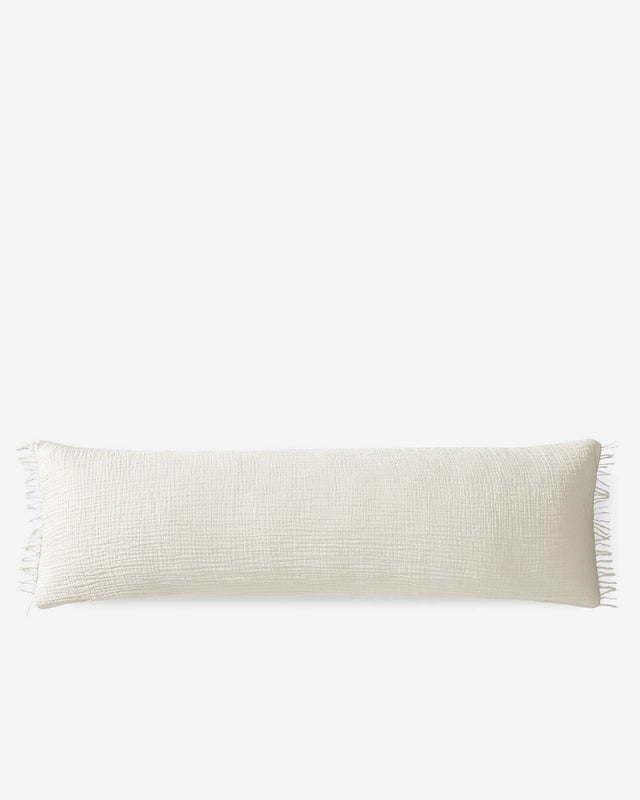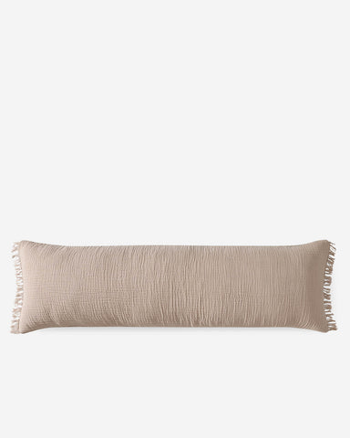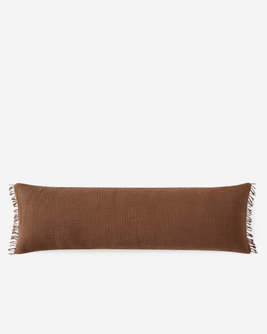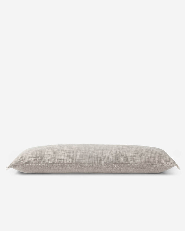 This extra-long, dual-sided pillow - featuring Snug fabric on one side and breathable Muslin cotton on the other - is the versatile piece you’ve been looking for. Both practical and stylish, with a memory-foam filling and fringed detailing, this pillow will elevate your cozy spaces. Place in between your legs as you sleep for improved spinal alignment, or use as a lower back rest for added support.