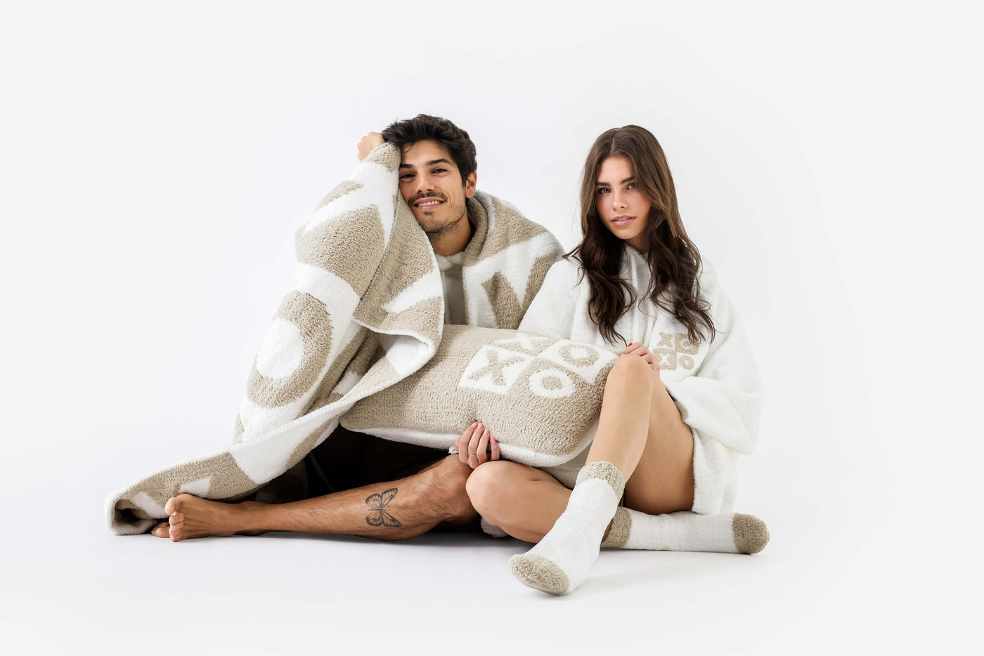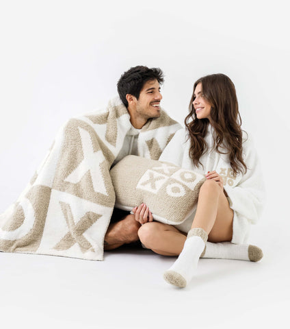 XO Checkerboard Small Lumbar Pillow - Off White - Sahara Tan / 22’' x 14''