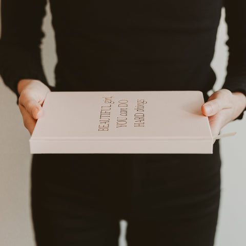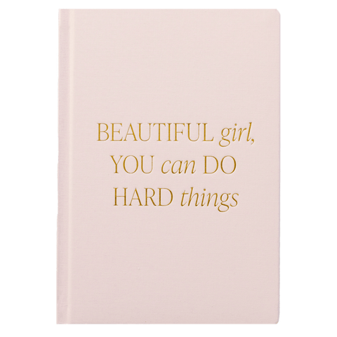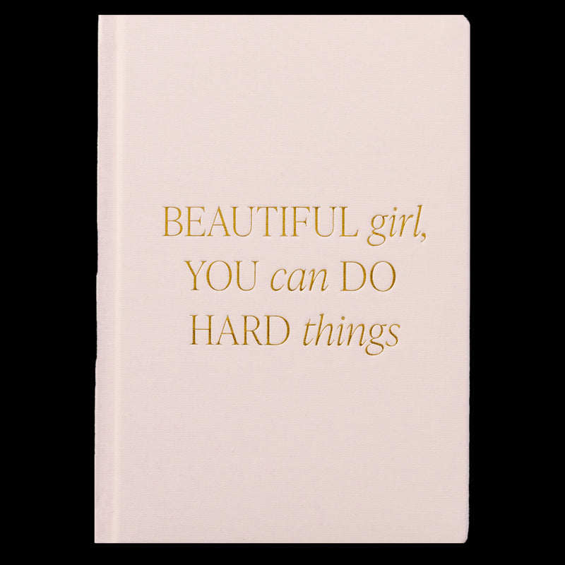 The Beautiful Girl Fabric Journal is a stylish reminder that you are capable of anything. With its soft pink fabric cover and gold foil details, this journal inspires confidence and positivity whether used at work, in class, or for personal reflection.