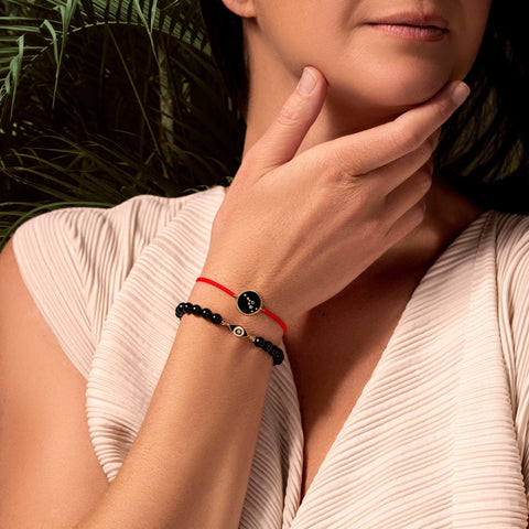 The Expanding Consciousness Black Onyx Evil Eye Charm Bracelet is designed to help you embrace strength, confidence, and clarity. Black Onyx beads ground your energy, fostering endurance and perseverance while guiding you away from fear and self-doubt. At the center, the Evil Eye charm acts as a shield against negativity, protecting your journey toward prosperity and meaning.