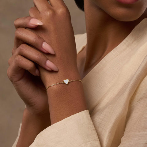 The Harmonious Spirit Mother of Pearl Gold Heart Bracelet blends love, imagination, and protection into one meaningful design. The luminous Mother of Pearl accent channels intuition and creativity, reminding you to embrace life’s playful side. Paired with a gold heart charm, it symbolizes deep connection and beauty, inspiring you to stay grounded in love while dreaming big.