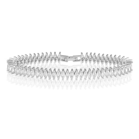 Treat yourself, or someone special to the timeless elegance of the Maisley Tennis Bracelet. Featuring sparkling diamond-shaped cubic zirconia stones, this bracelet delivers eye-catching brilliance with every move. Its classic yet luxurious design makes it the perfect piece to bring out your inner glam, whether worn solo or stacked with other favorites.