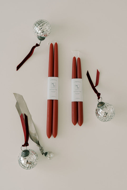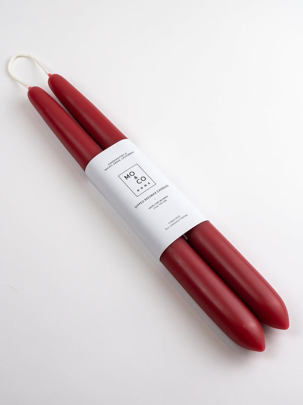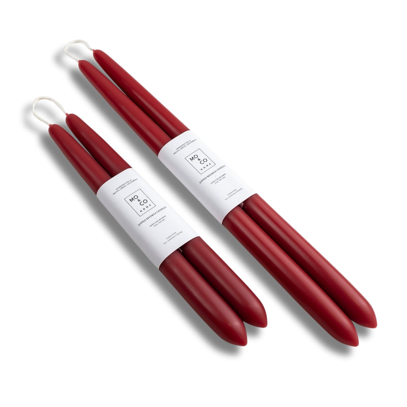Infuse your home with the warmth and richness of the season using Berry Red Dipped Beeswax Taper Candles by Mo&Co Home. Handcrafted in the USA from 100% pure beeswax, these candles feature a deep berry-red hue achieved with eco-conscious coloring. Their subtle honey aroma and natural sheen bring an inviting, festive glow—perfect for dinners, gatherings, and cozy winter nights.