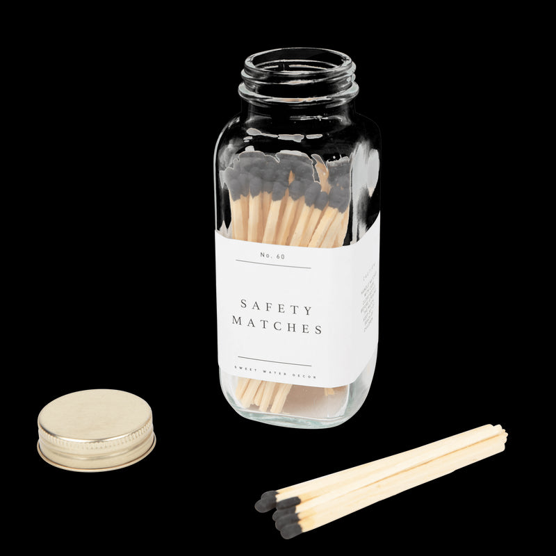 The Black Tip Safety Matches combine function with modern design, making them a stylish accent for any room. Packaged in a clear glass jar, these long matchsticks are perfect for lighting candles, fireplaces, or incense while doubling as decorative home accessories.