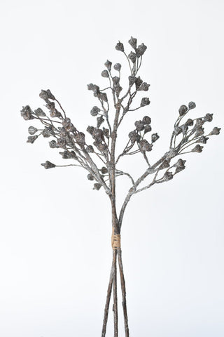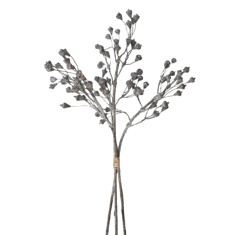 Each twig is detailed with petite pods for a natural, organic silhouette—reminiscent of frost-kissed winter flora. The shimmering finish creates a luminous play of light, while the neutral tones make them effortlessly versatile across various décor palettes. Whether placed in a vase, woven into garlands, or arranged with evergreens, these stems offer endless styling possibilities that last season after season.