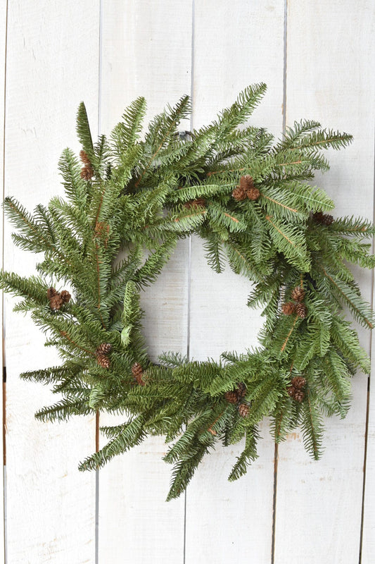 Bring the timeless beauty of spruce into your home with this 24" RealTouch Faux Wreath, designed to look and feel incredibly realistic. Each stem is fully wired and features subtle brown touches, just like fresh greenery, while faux pinecones add classic seasonal charm.
