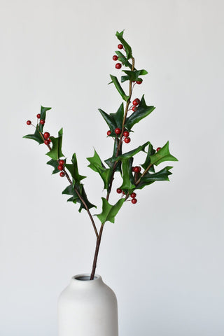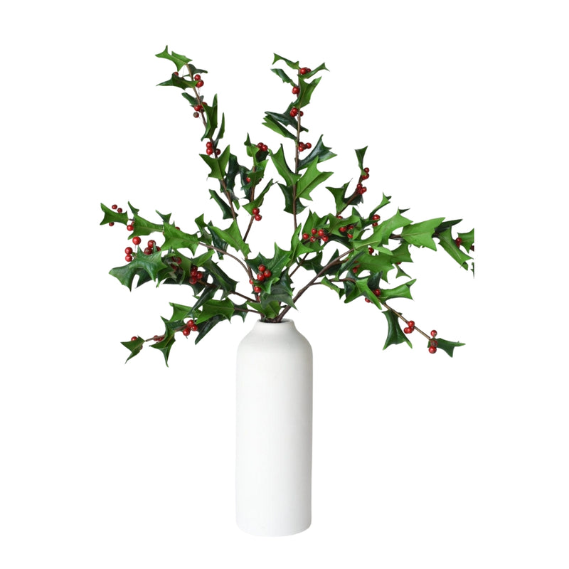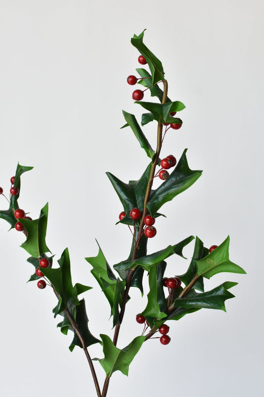 Bring timeless holiday charm to your décor with this 38" Faux Real Touch Holly Branch. Featuring lush green leaves and vibrant red berries, this realistic stem adds festive texture and color to arrangements, trees, and vases. A beautiful, long-lasting accent for Christmas decorating.