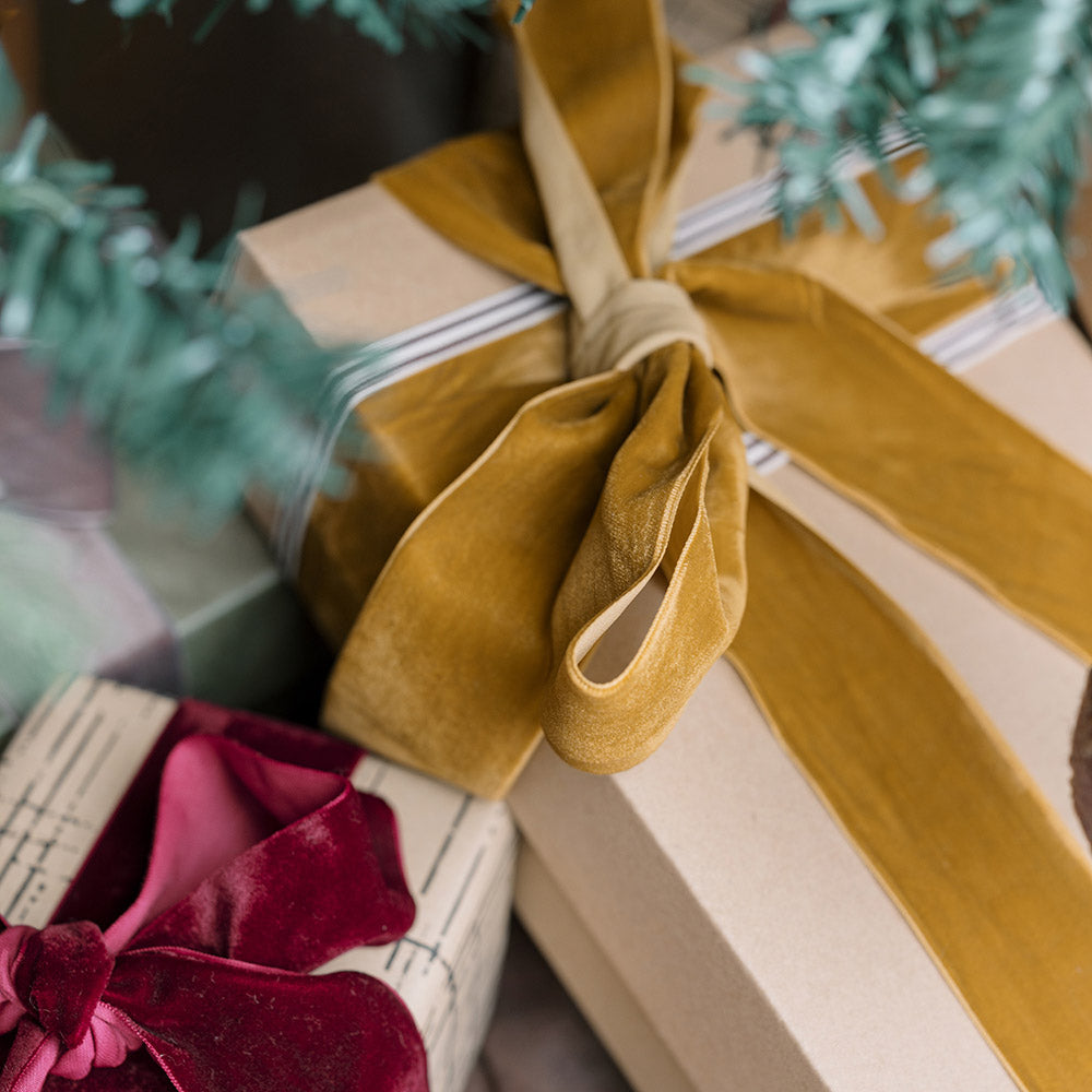Luxurious Wide Hand Dyed Velvet Ribbon in Gold - ONE AFFIRMATION