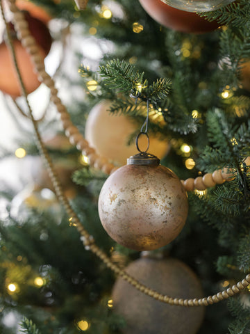 Bring timeless elegance to your holiday décor with our Handcrafted Mercury Glass Ornaments. Each ornament is mouthblown and artisan-crafted, featuring a soft pewter base with marbled latte tones and a taupe gold antiqued mercury finish that shimmers beautifully under the lights.