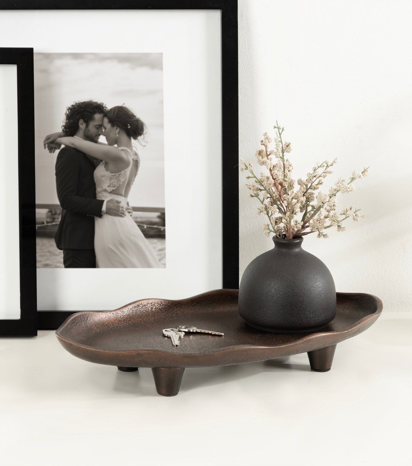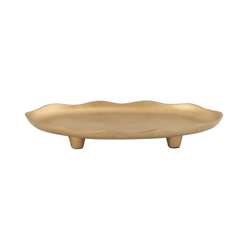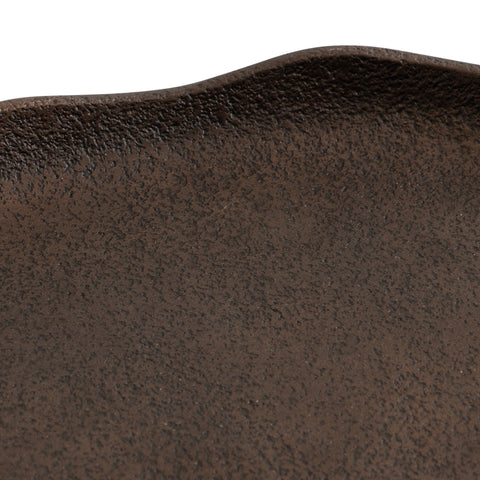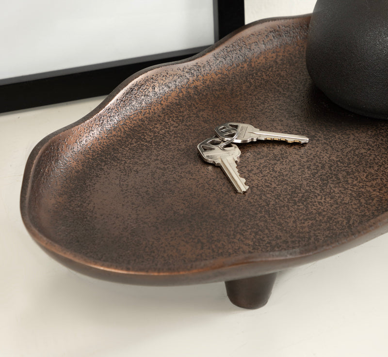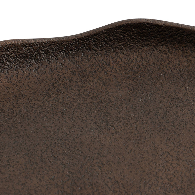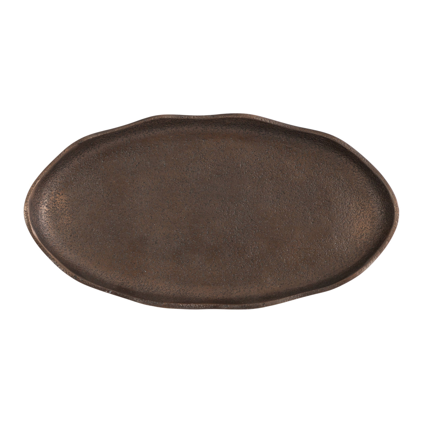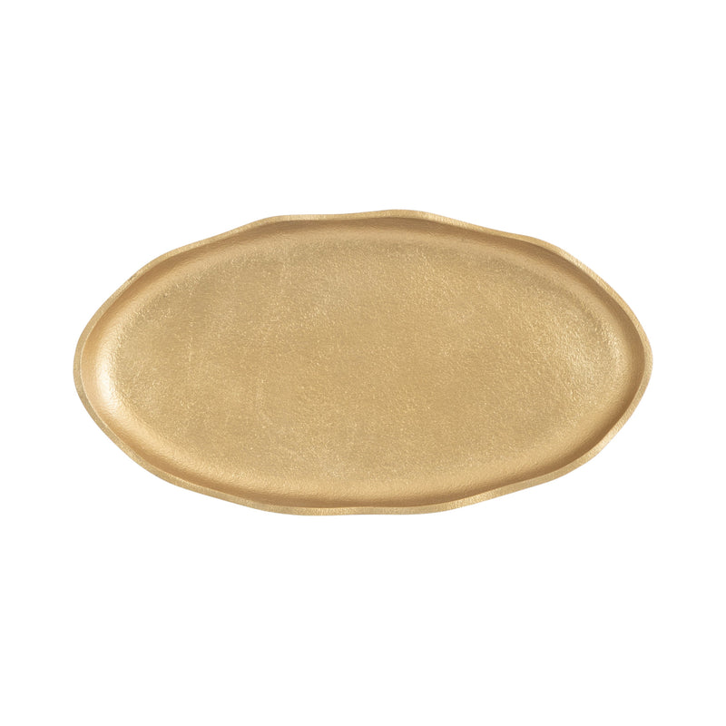 The Alessia Oval Decorative Tray from the Alessia collection is a stunning, functional accent piece that combines artistry with practicality. Handcrafted in India using sand-casting, this oval tray features a textured, rugged aluminum surface with a unique deckled edge, adding a distinctive, one-of-a-kind touch to your home decor. The handcrafted process ensures each piece is slightly different, making each tray unique.