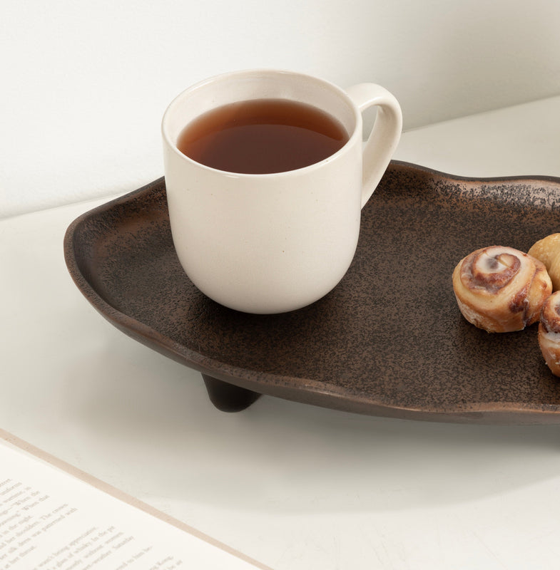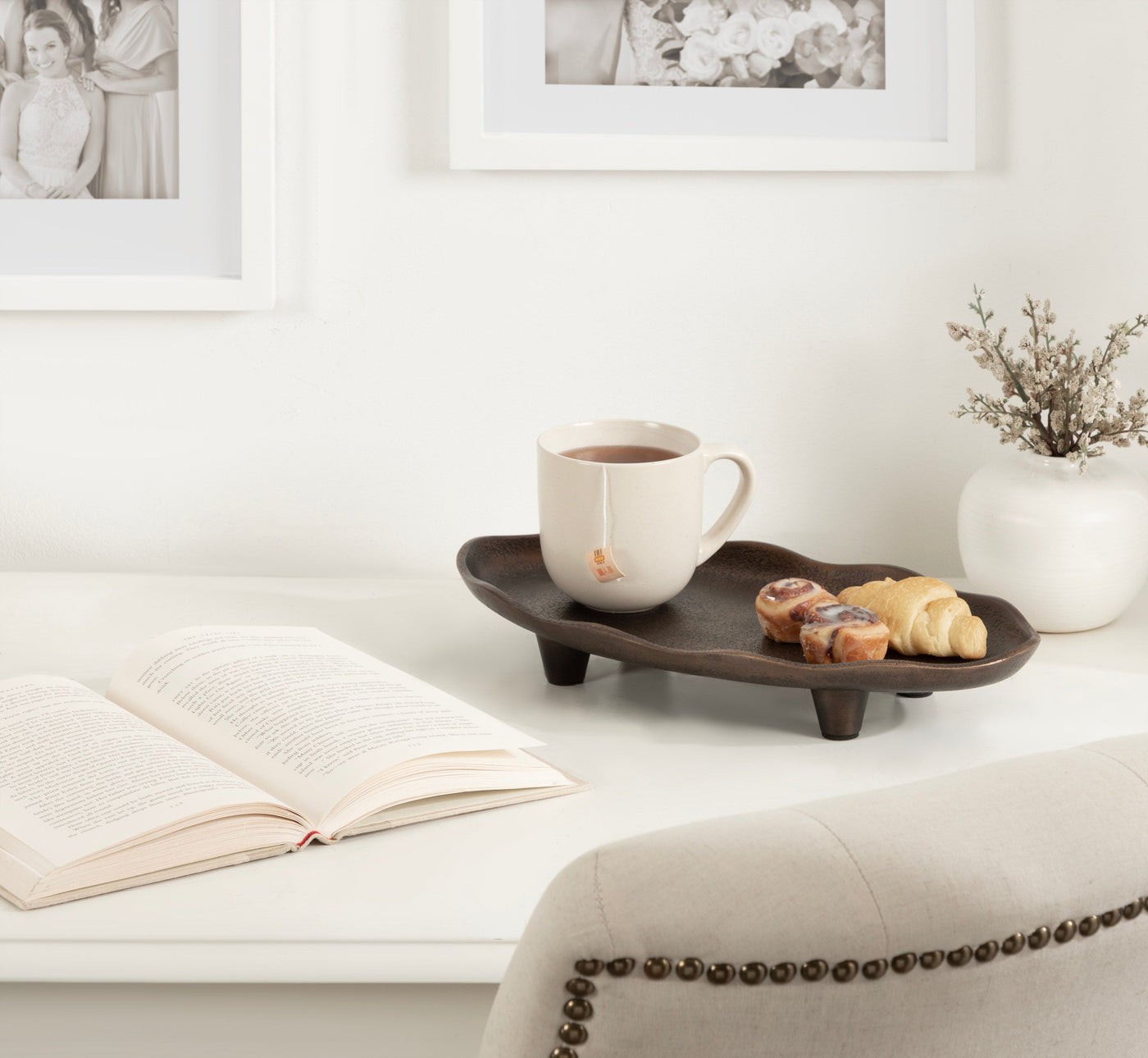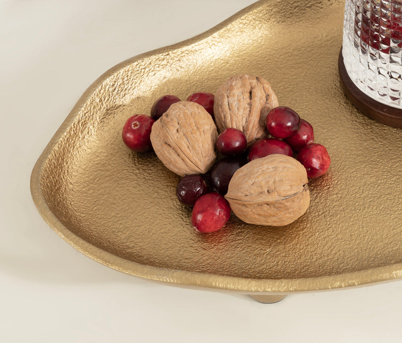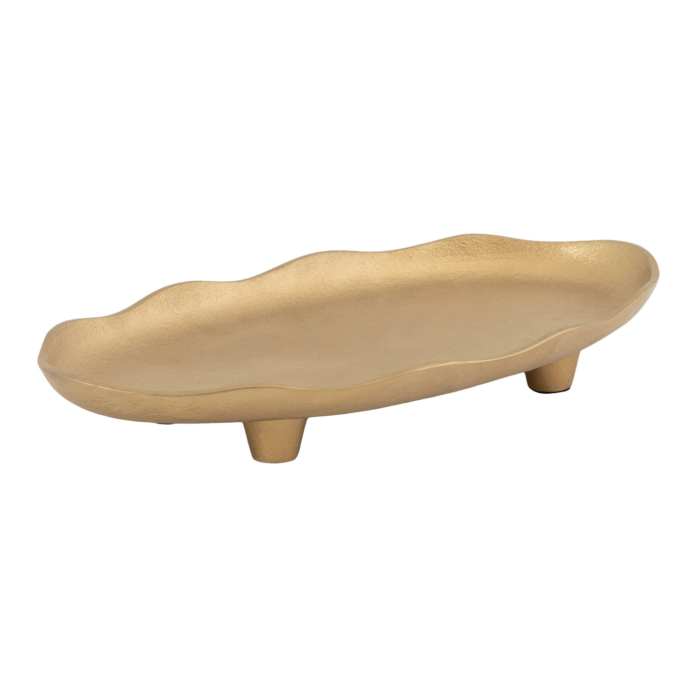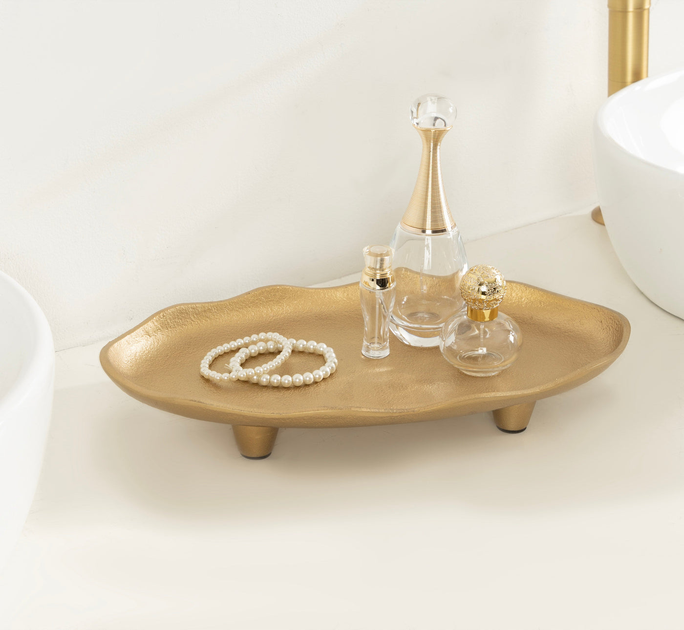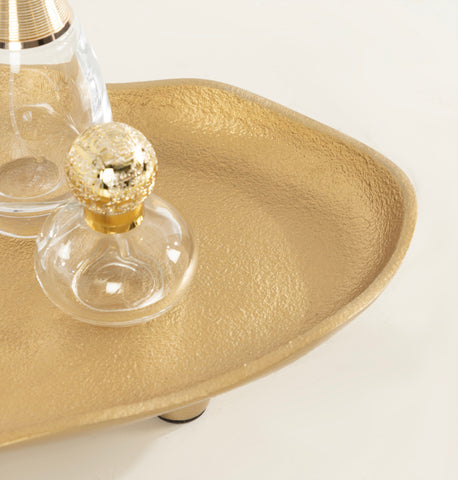 The Alessia Oval Decorative Tray from the Alessia collection is a stunning, functional accent piece that combines artistry with practicality. Handcrafted in India using sand-casting, this oval tray features a textured, rugged aluminum surface with a unique deckled edge, adding a distinctive, one-of-a-kind touch to your home decor. The handcrafted process ensures each piece is slightly different, making each tray unique.