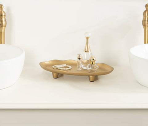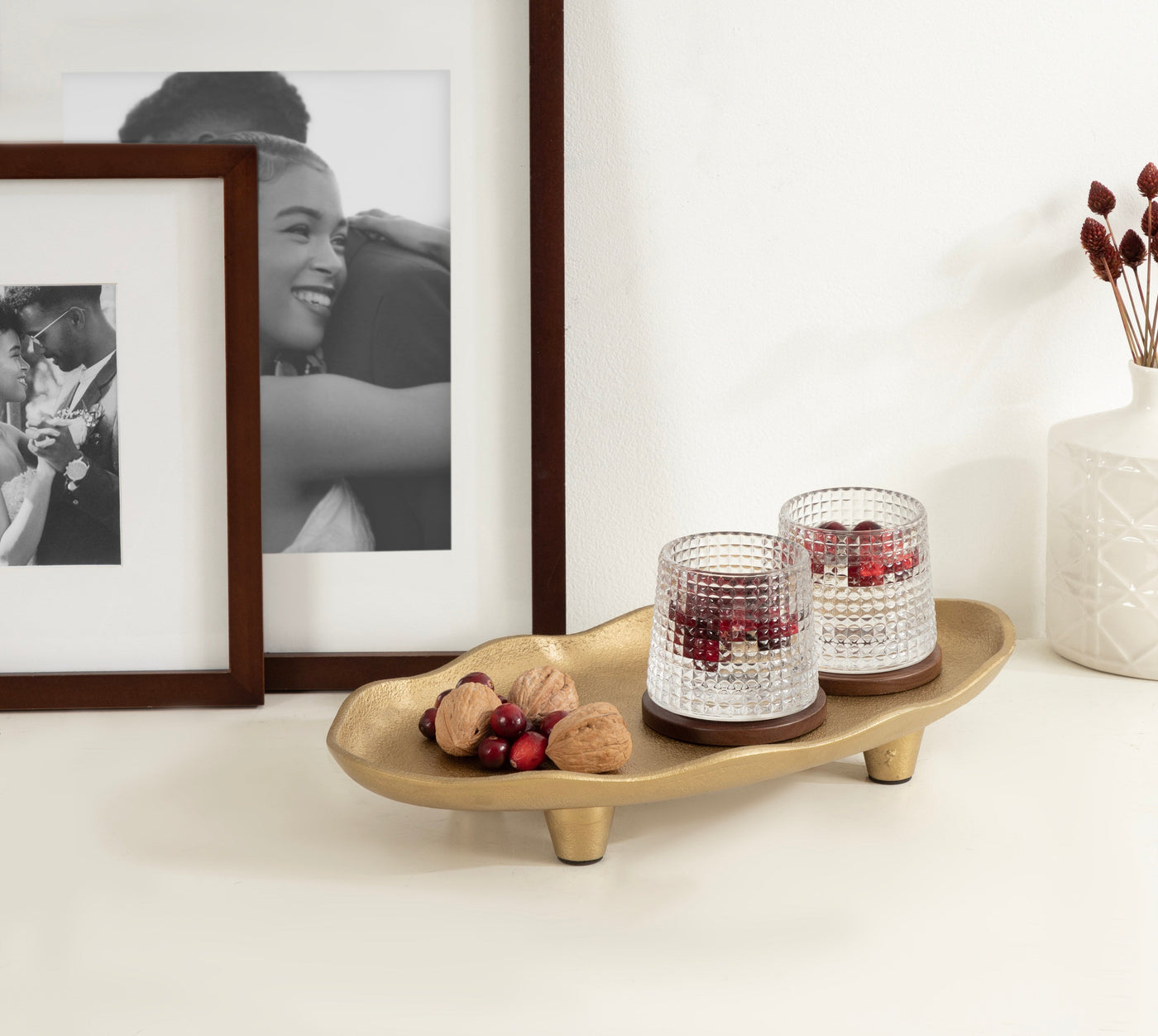 Perfect for serving or display, the Alessia Oval Decorative Tray is food-safe, offering versatility in use. Its raised edges provide stability, while the soft foam-padded feet protect your surfaces from scratches and scuffs. Whether used on a coffee table, dining room table, or as a catch-all tray for accessories, this tray brings modern elegance and functional style to any space.