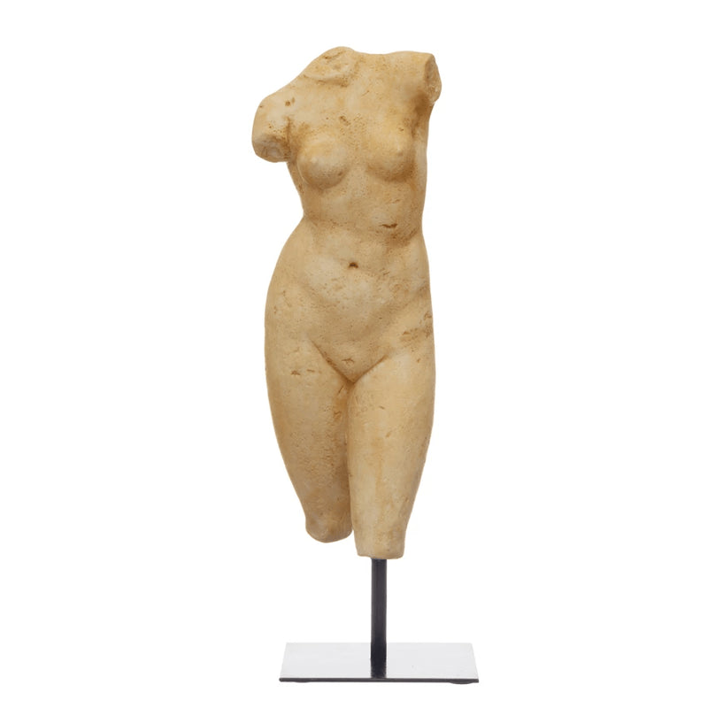 Celebrate form and artistry with the Decorative Female Body Sculpture. Crafted from high-quality resin and finished with a plaster-like texture, this elegant piece captures timeless beauty in a minimalist silhouette. Resting on a sleek metal stand, it brings balance, sophistication, and a gallery-inspired feel to any room.
