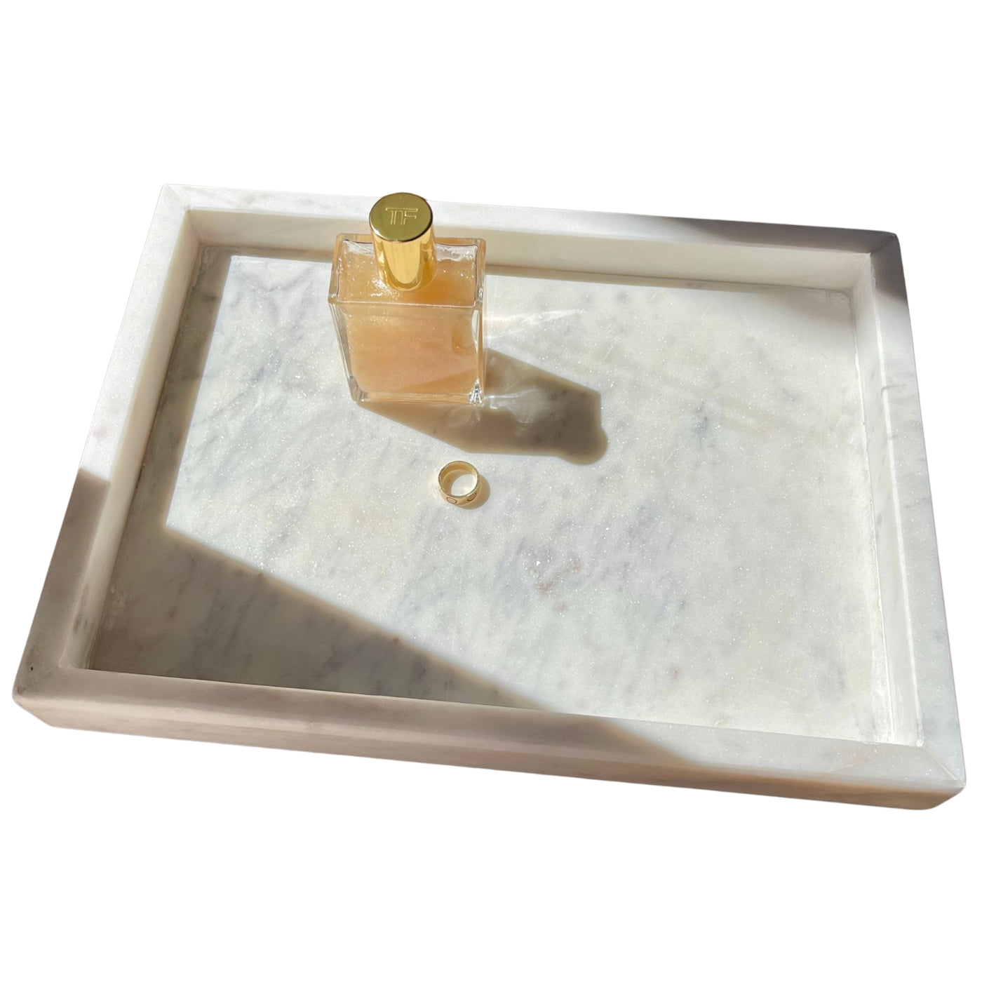 Handcrafted White Marble Serving Tray - Organic Stone 10x14 Inch Sale