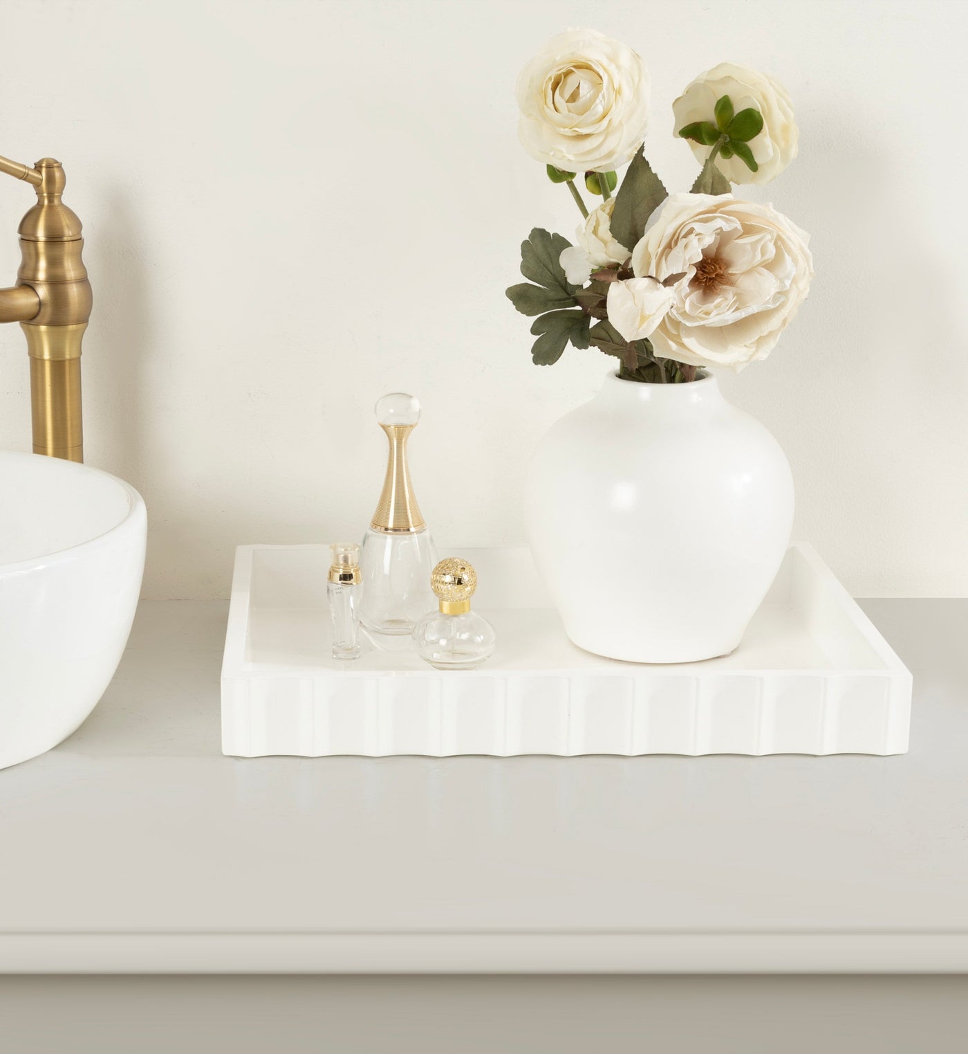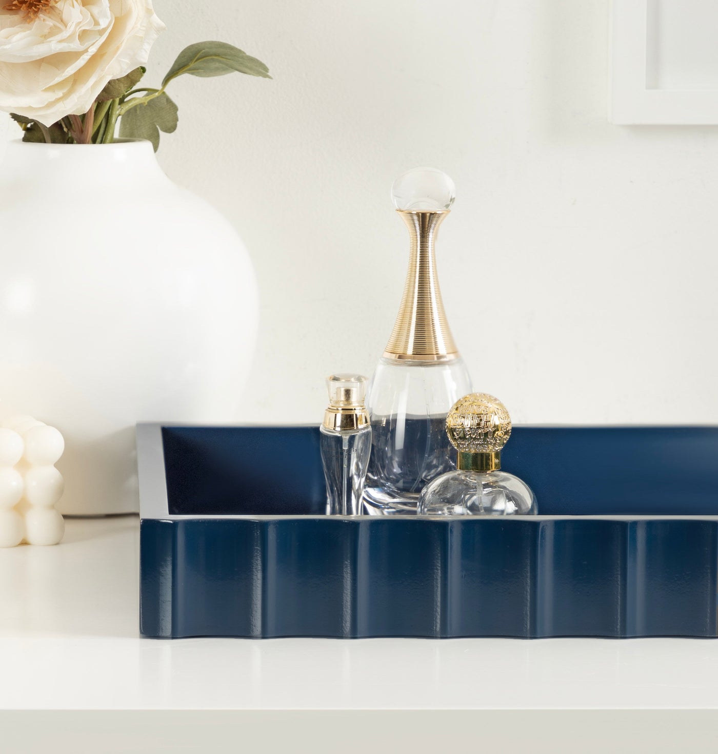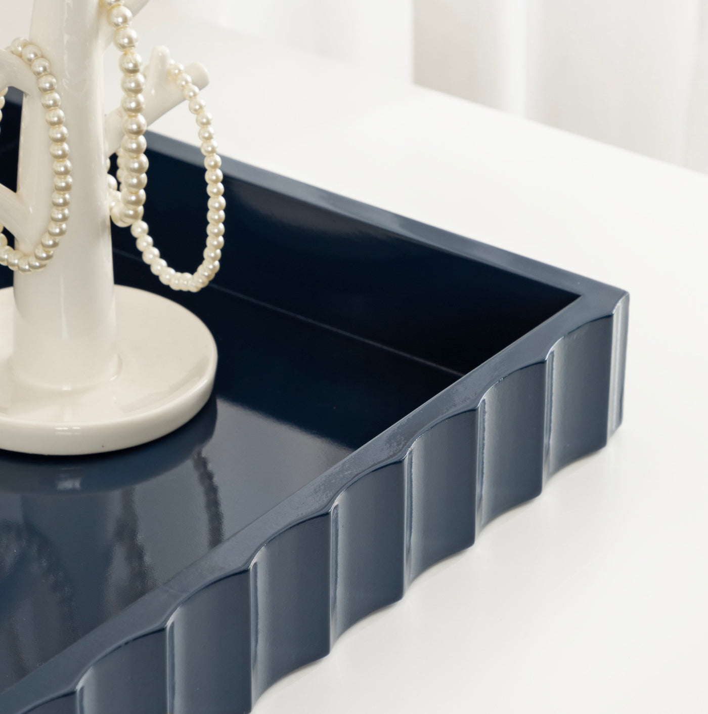 The Lissi Rectangle Tray brings contemporary flair and versatile functionality to your home. With its sleek fluted design and wavy edge, this tray offers both style and practicality. It’s perfect for organizing your keys and change on an entrance console, serving as a decorative accent on your ottoman for beverages, or even organizing your makeup on a vanity.