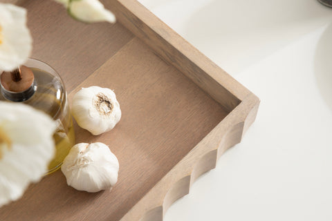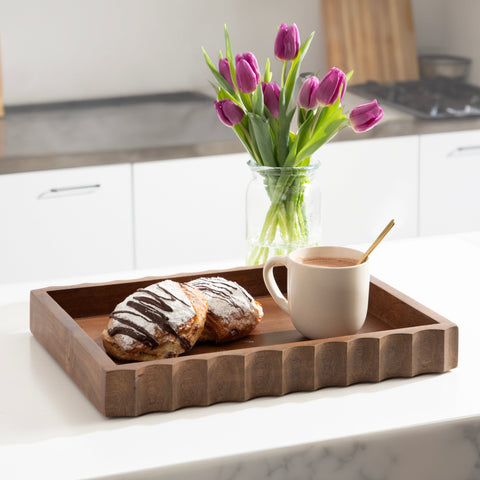 The wavy edge ensures that your items remain secure while being transported, and the tray features pads on the bottom to protect your surfaces. Coming fully assembled, it is easy to incorporate into any room with no hassle.