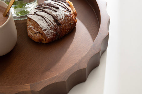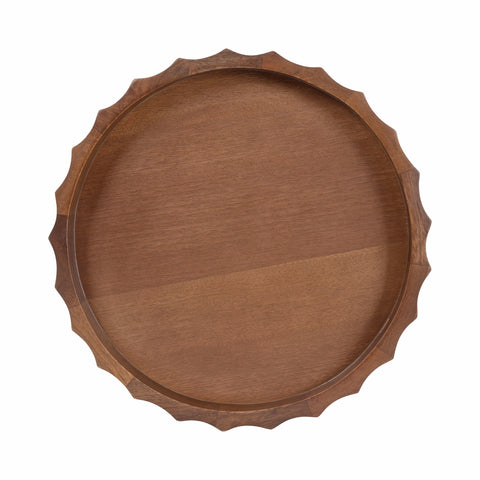The tray’s wavy edge ensures that your items stay secure while transporting, and the pads on the bottom protect your surfaces, offering both functionality and elegance. This tray comes fully assembled, making it easy to incorporate into your decor right away.