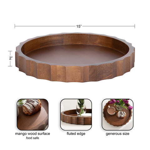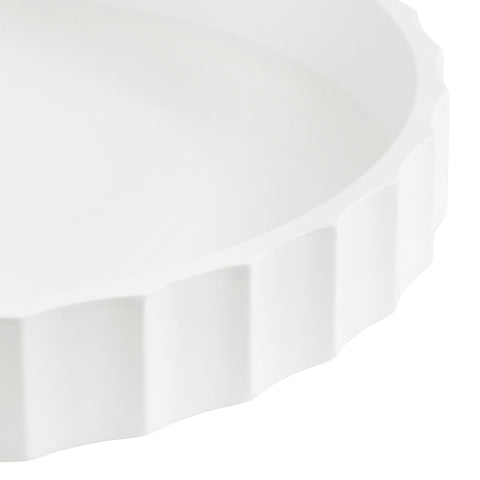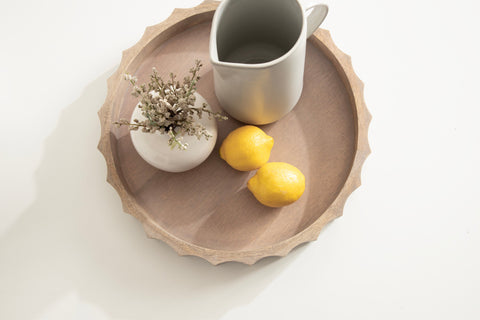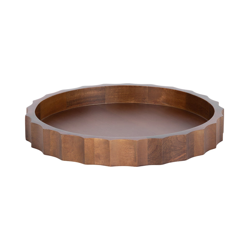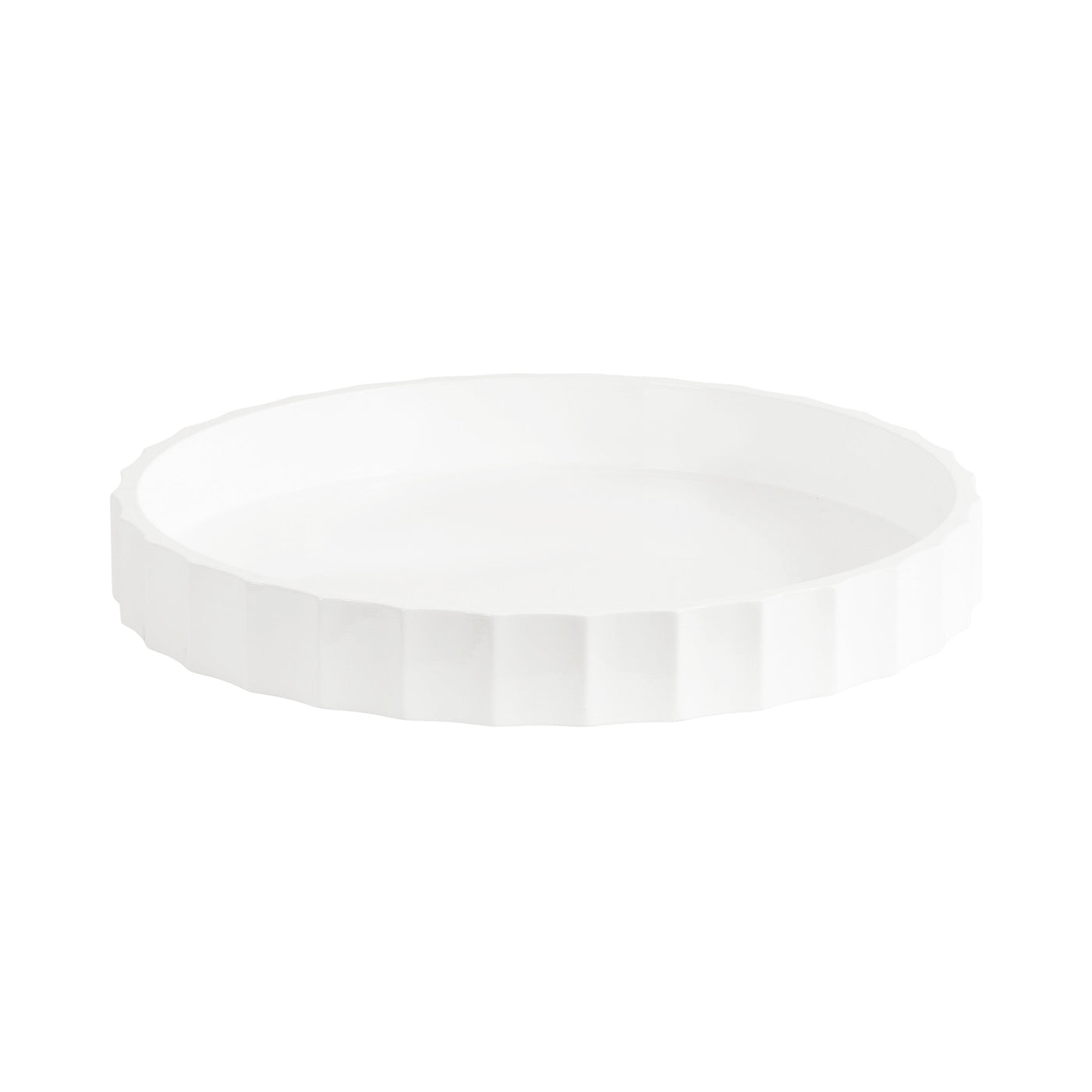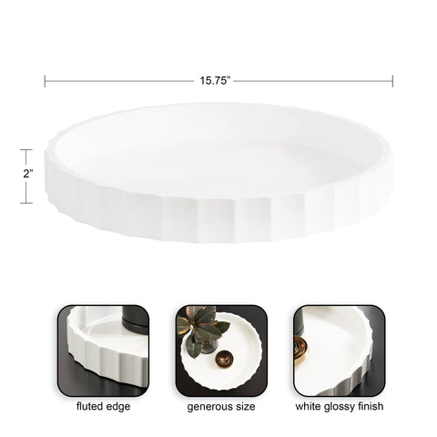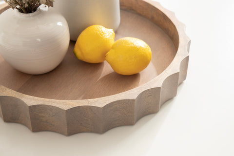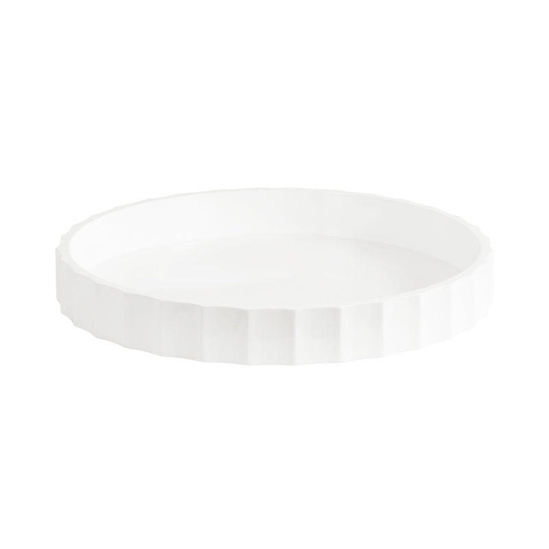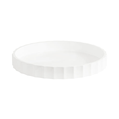The Lissi Round Tray is a beautiful blend of contemporary style and practical functionality. Its fluted, wavy design adds an elegant touch to any room, making it a standout piece for your home. Whether used as a trinket tray for keys and change on an entry console table, as a decorative accent on an ottoman for holding beverages, or for organizing makeup on your vanity, this versatile tray meets your needs with style.