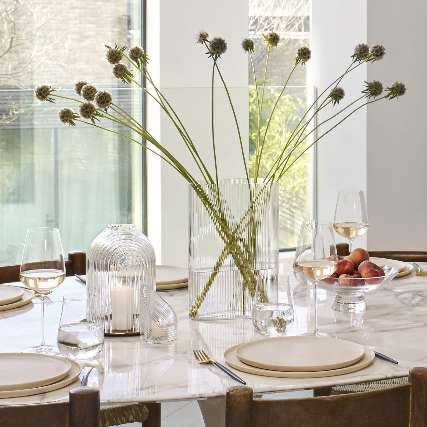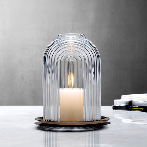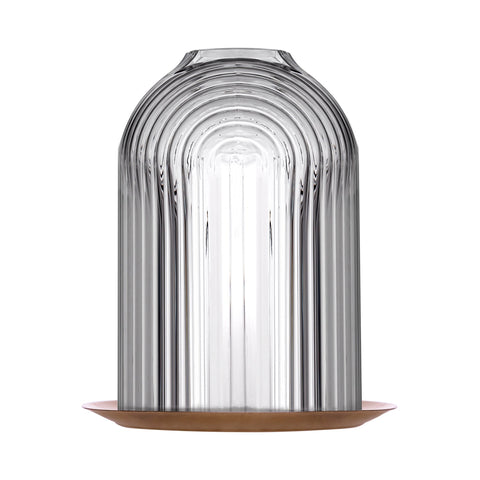 Bring an artful glow to any space with the NUDE Ilo Candleholder (Medium) — designed to create a mesmerizing display of light. Perfect for both indoor and outdoor settings, this medium-sized candleholder combines a clear crystalline dome with a hand-engraved ripple pattern, adding texture and depth to its design.