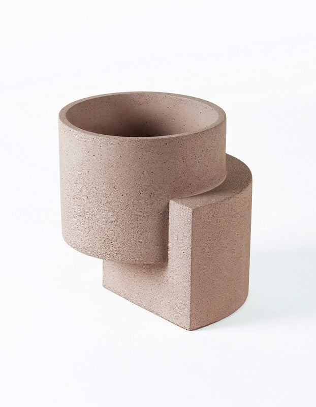 The Platform Planter Medium combines sculptural design with a terrazzo finish that highlights natural stone textures. Crafted to fit a 6" grow pot, it features a recessed drainage area for healthier plants and cleaner watering. The terrazzo surface, created by pouring natural-colored stones into a concrete base, adds visual interest while keeping a refined, modern look.