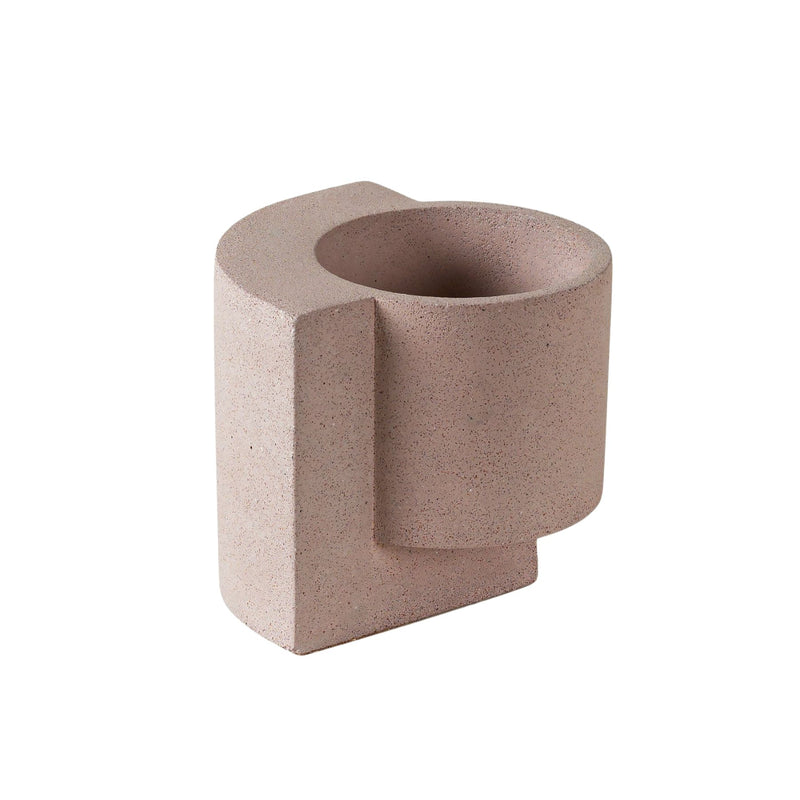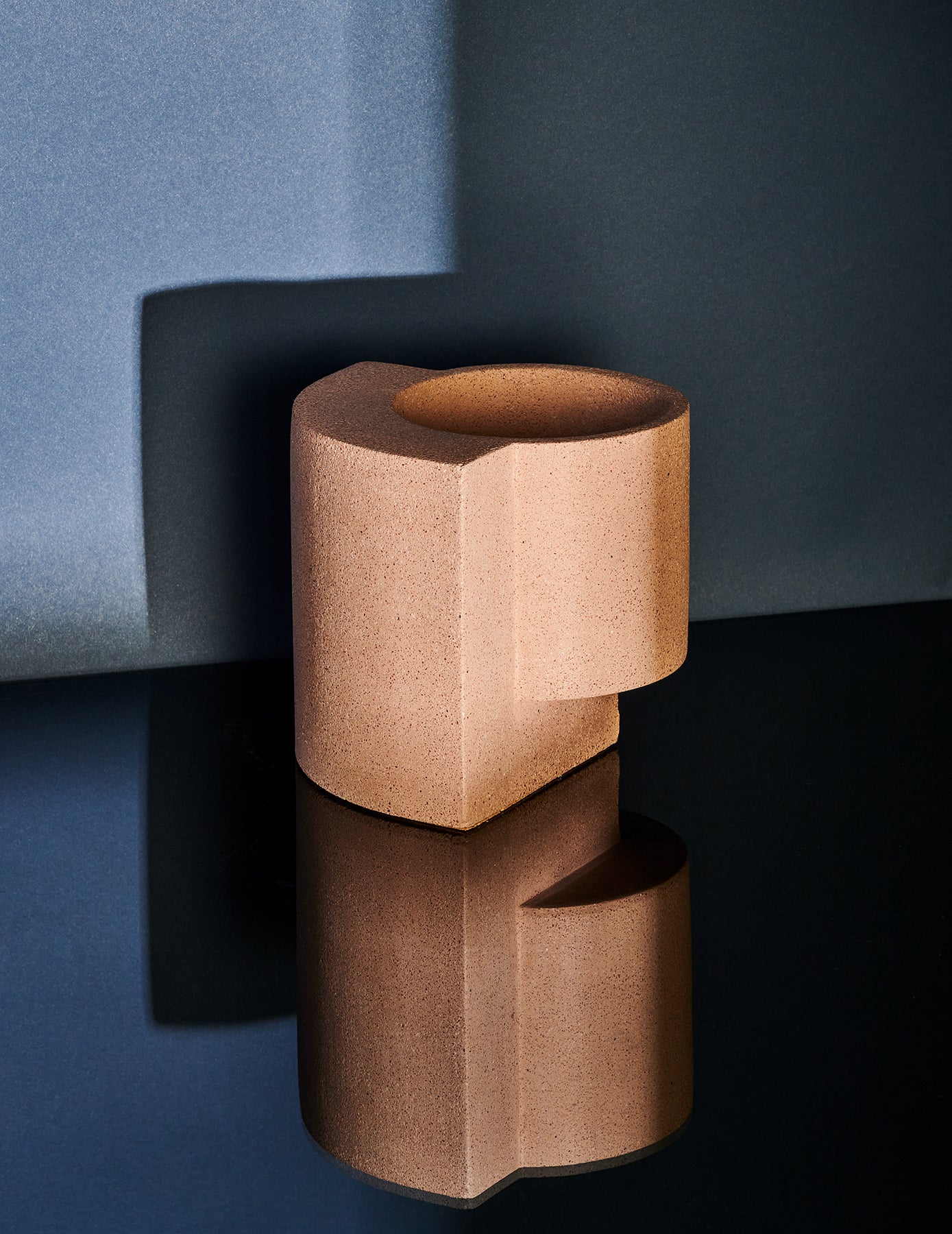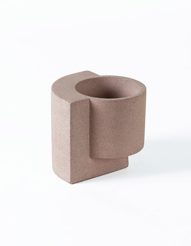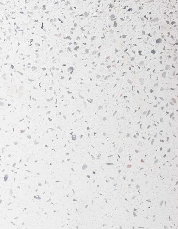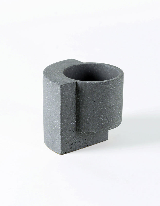 The Platform Planter Small combines Bauhaus-inspired form with the natural texture of terrazzo. Designed to fit a 4" grow pot, it features a recessed drainage area to keep plants healthy while minimizing mess. Its surface is created by pouring natural-colored stones into a concrete base, resulting in a unique finish that balances raw materiality with modern design.